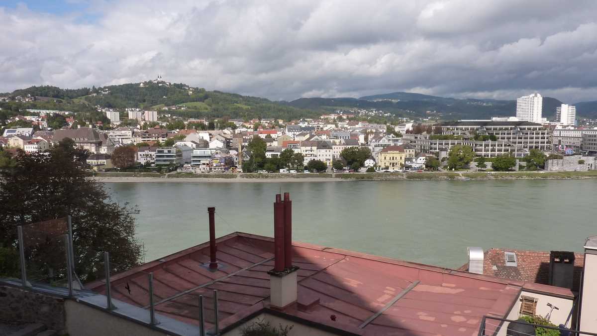 De lîngă pod și debarcaderul la care acostează vasele de croazieră, de pe faleza populată cu jogger-i și oameni cu cîini la plimbare, marginea dinspre Dunăre a Altstadt-ului, Orașul Vechi, urcînd străduța cu macadam care șerpuiește în pantă printre spații verzi, se ajunge foarte rapid la Linzer Schloss, castelul local cu istorie și destin similare multor altor castele europene, fost reședință imperială, fortăreață, spital militar, pușcărie, cazarmă și, actualmente, muzeu. Dacă n-ai timp decît pentru o cafea în Linz, ăsta ar fi locul unde s-o bei: aproape totul poate fi observat de sus, de pe terasa Schlossmuseum din aripa nouă a castelului, de unde e disponibilă pentru vizionare o dublă panoramă. De aici se văd două orașe: Linz-ul prezentului și cel al trecutului, vechi de peste două sute de ani. Unul de ziduri, acoperișuri și turle, din cărămidă și țigle, altul din fontă, în macheta la scară 1:400, modelul orașului la 1800.