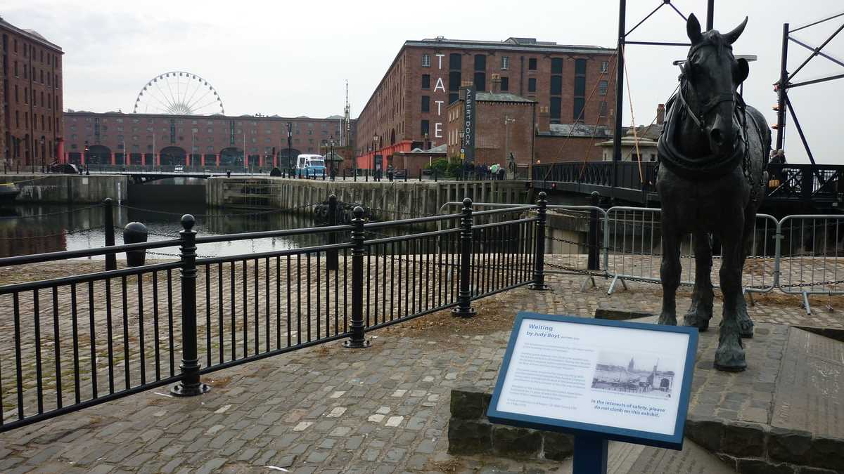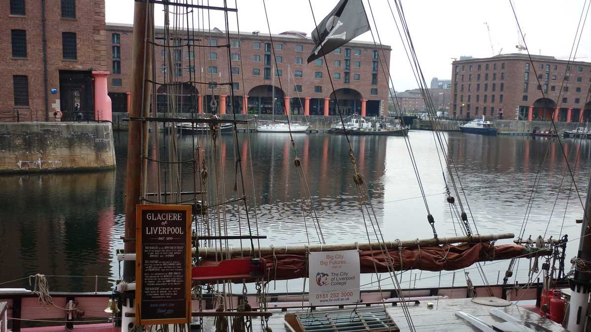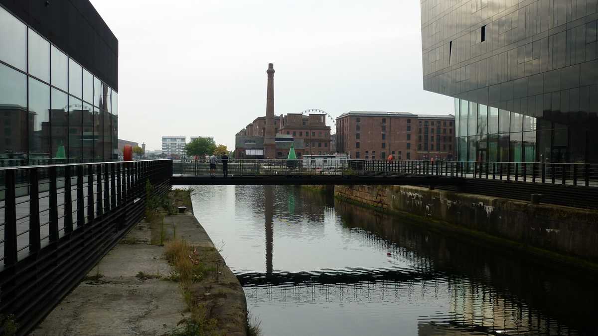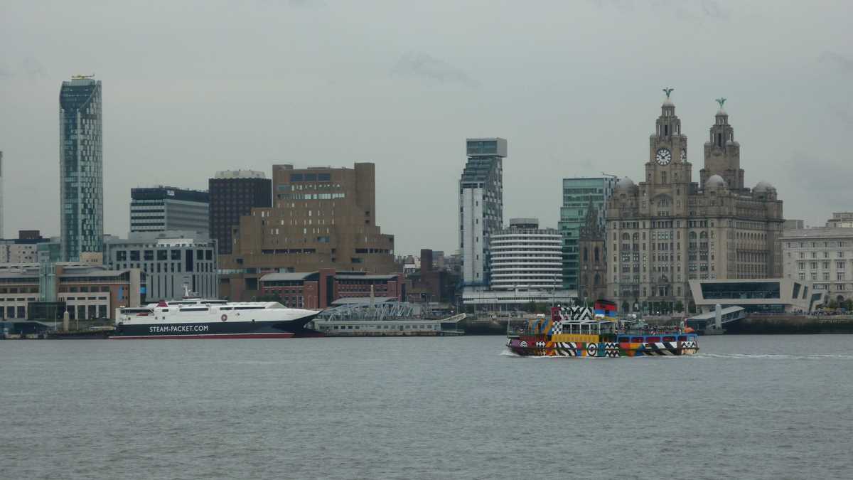 Naufragiat pe o bancă de pe cheu, cu ochii pe panorama clădirilor aliniate peste apă într-un skyline dominat de niște blocuri-turn cu pretenție de zgîrie-nori (pe la sfîrșitul secolului al XIX-lea, Liverpool a avut ambiția de a se transforma într-un New York al Europei), m-am trezit coleg de bancă cu o localnică cu păr roz și piercing în buză, cu care m-am conversat vreo jumătate de oră. Ceva mai dificil, mai întîi, pînă și-a dat seama cu cine vorbește și a mai redus din viteză și accent (inițial, înțelegeam două cuvinte din zece). De la ea am aflat că amfibiile galbene stil WWII pe care le văzusem data trecută prin oraș, pline cu turiști în sesiuni de sightseeing, au fost retrase din circulație. După ce, la finalul cursei, în tentativa de a recrea senzațiile trăite de militari la schimbarea mediului de deplasare, unul dintre TAB-uri a luat apă la bord foarte realist și era cît pe ce să își înece pasagerii.