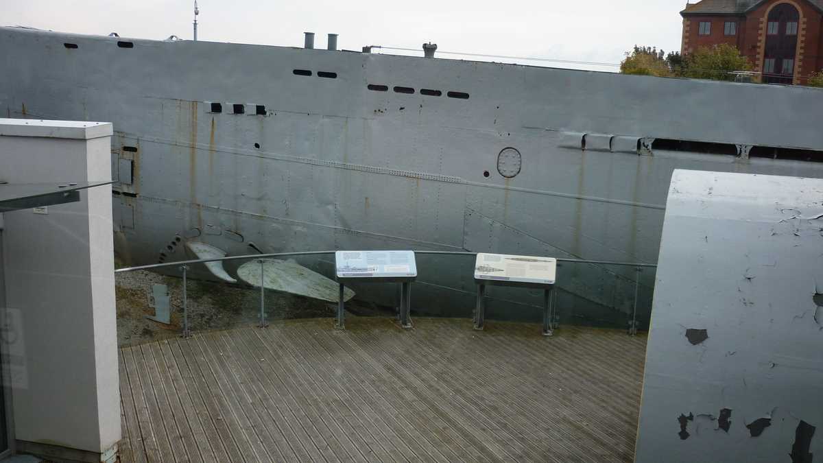 Cum faleza rîului Mersey, de la Albert Dock la Pier Head, o văzusem îndeaproape, pentru o schimbare de perspectivă am trecut pe partea cealaltă a rîului, în Birkenhead. Cu trenul care se transformă în metrou pe porțiunea de traversare pe sub Mersey, luat din James Street, pînă la stația următoare, Hamilton Square. Știam că atracția principală a zonei e un submarin german din WWII arestat de englezi și transformat în muzeu, lîngă terminalul de feribot Woodside. U-boat Story e noua misiune a lui U-534, posesorul uneia dintre rarele mașini de criptare Enigma; intrarea e inclusă în biletul de croazieră cu ferry (10 lire) sau te costă 7,50 lire.