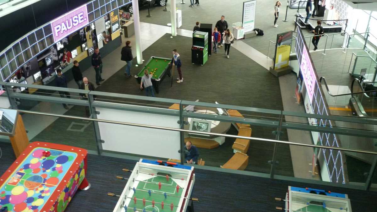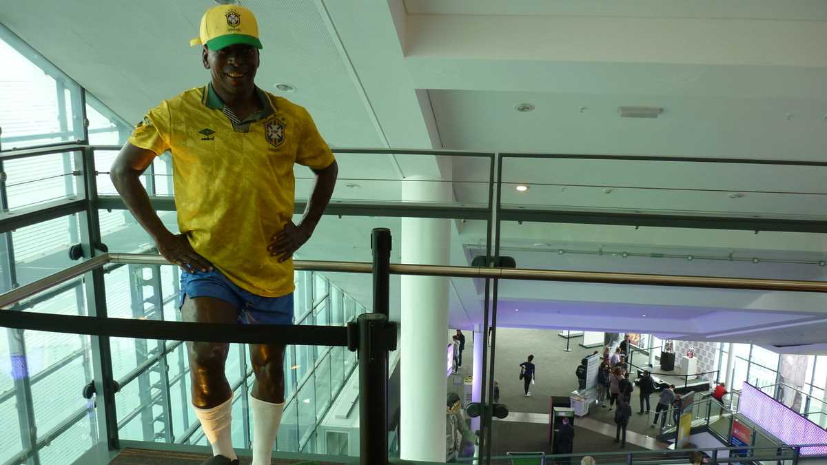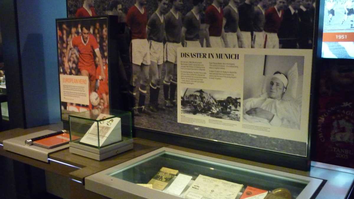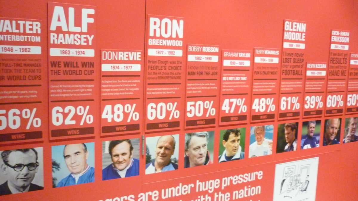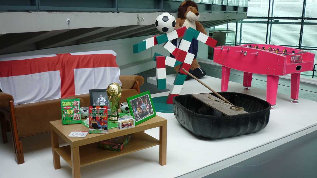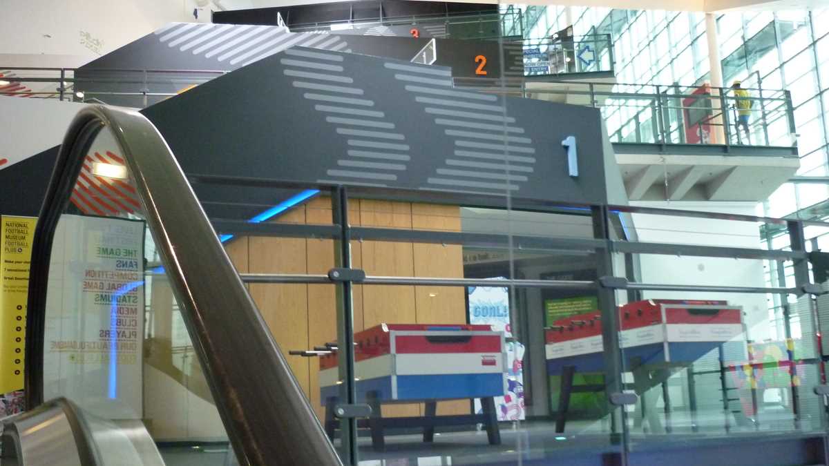 Chiar la intrarea în clădirea futuristă construită în scară, pe cinci niveluri, ești întîmpinat de un podium pe care poți să fabrici momentul în care ai ridicat deasupra capului trofeele fotbalului englez și, în memoria camerei foto, o să ai și dovada performanței de a plăti doar 3 lire pentru o poză cu cupele-replică. Aproape un întreg etaj este alocat, desigur, celor două echipe-fanion ale Manchesterului, United și City, dar și echipei naționale. Pregătește-te, deci, să fii spectatorul unor povești memorabile istorisite de diversele artefacte din vitrine; de exemplu, doar mingea finalei World Cup din 1966, singurul campionat mondial cucerit de englezi, acasă, pe vechiul Wembley, ar putea spune dacă a trecut sau nu linia porții în partida aia celebră de acum 50 de ani cîștigată în prelungiri cu 1-0. Doamnele microbiste se vor delecta cu o paradă a modei echipamentului sportiv de-a lungul timpului: de la puloverul din perioada romantică a fotbalului purtat în 1872 de englezul Arnold Smith la Anglia-Scoția, primul meci internațional ever, sau tricourile clasice ale unor jucători mai mult sau mai puțin necunoscuți, gen Pelé sau Maradona, la costumul accesorizat cu senzori purtat de Messi pentru computerizarea mișcărilor sale în jocul FIFA 16.