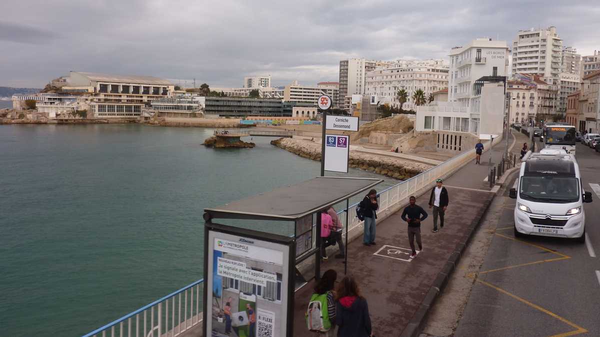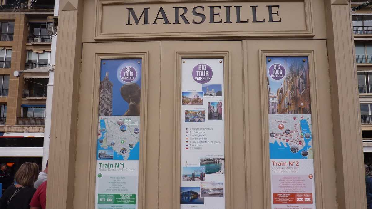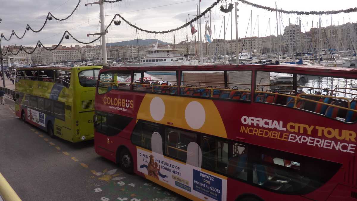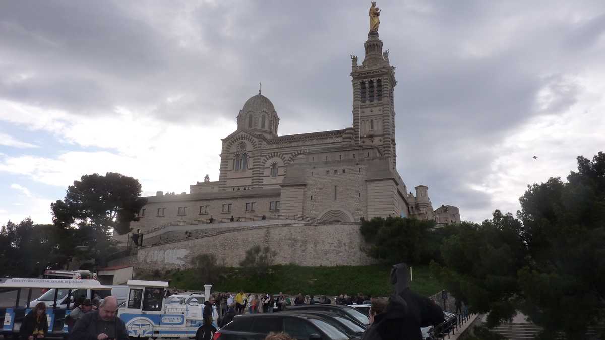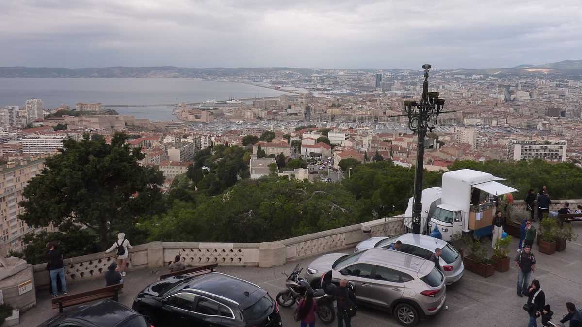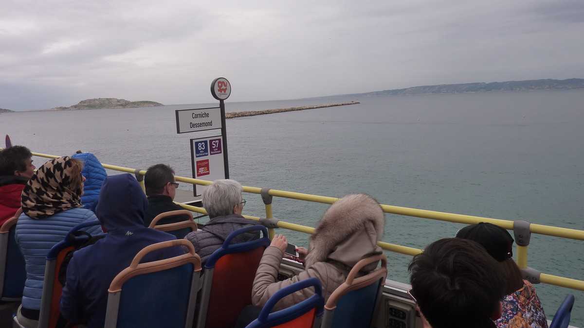 În sîmbăta aia înnorată de noiembrie, lumea stătea la coadă pe trotuarul de vizavi de Primărie, ca să urce în vagonetele pe roți ale trenulețului turistic spre Notre-Dame de la Garde, catedrala care supraveghează orașul de pe o colină. Sau în autobuzul hop-on / hop-off Colorbüs, cu stație ceva mai încolo. Tractorașul alb-albastru și autocarul roșu cu etaj decapotat au același traseu: în jurul golfulețului în formă de U, apoi pe lîngă Plage des Catalans, pe Corniche Kennedy, patru kilometri de șosea paralelă cu țărmul, deasupra Mediteranei, și, turînd motorul, la deal, spre Notre-Dame de la Garde, punct terminus. Oprirea mai lungă a turului în care călătorii fac schimb de locuri cu cei care au fost deja la catedrală, urcînd niște sute de trepte, nu atît ca să se apropie un pic de Dumnezeu, cît ca să fie recompensați cu o priveliște divină, de 360 de grade peste Marsilia.