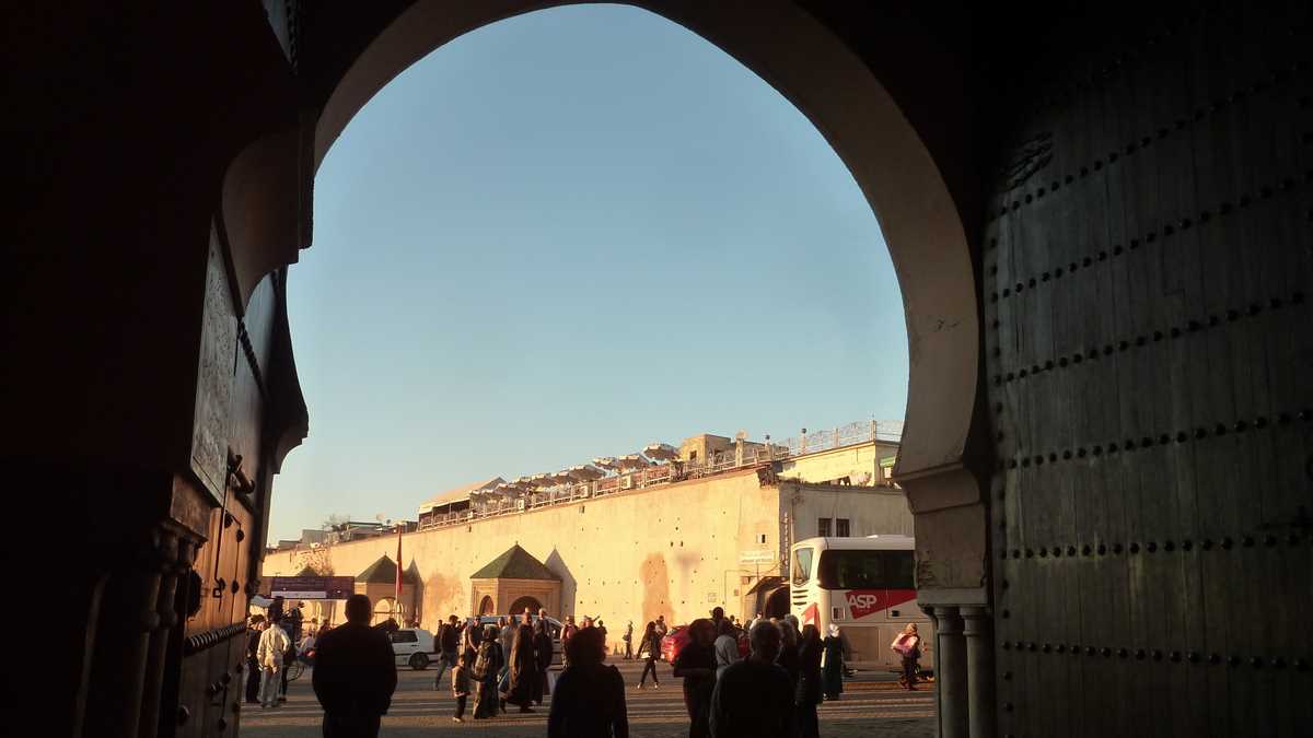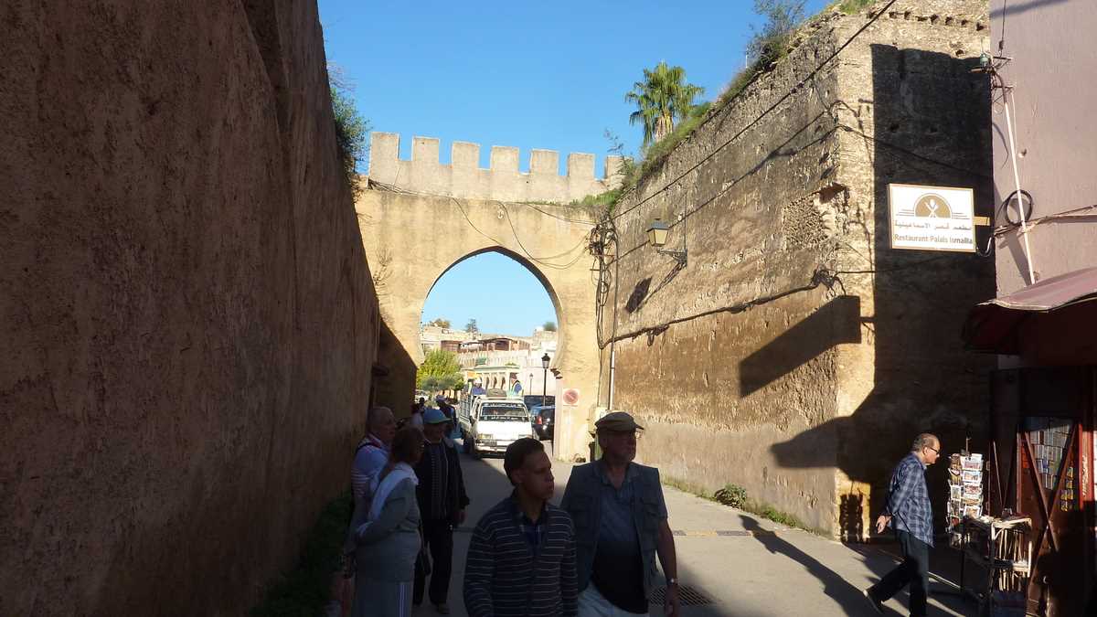 După excursia în timp și spațiu la ruinele romane Volubilis, ajungeam, pe la amiază, în Meknes, cea mai puțin faimoasă capitală imperială a Marocului, comparativ cu celelalte trei, flamboaiantul Marrakesh, tradiționalul Fez sau cosmopolitul Rabat. Și, pentru că tot eram în autocar, călătoria continua cu un tur de oraș, comentat de la microfon de doi ghizi, unul de limbă franceză și italiană, celălalt – un sexagenar cu barbă albă, încă atletic, îmbrăcat în caftanul tradițional – de o engleză cu accent arab. Din loc în loc, se făceau opriri pentru poze sau o scurtă vizită a zonei, pe grupuri, în funcție de limba pe care o înțelegea fiecare.
