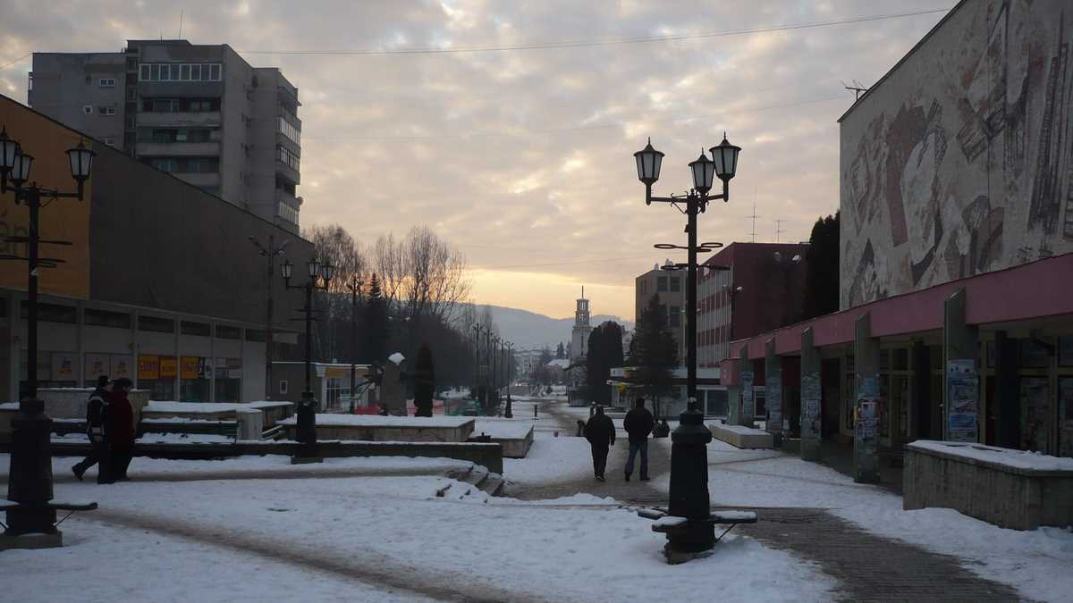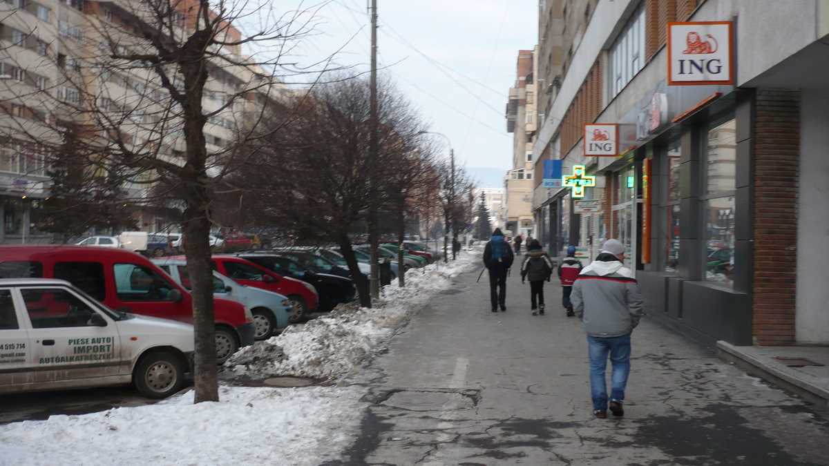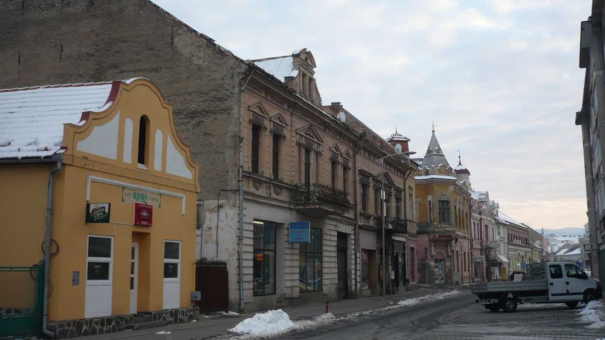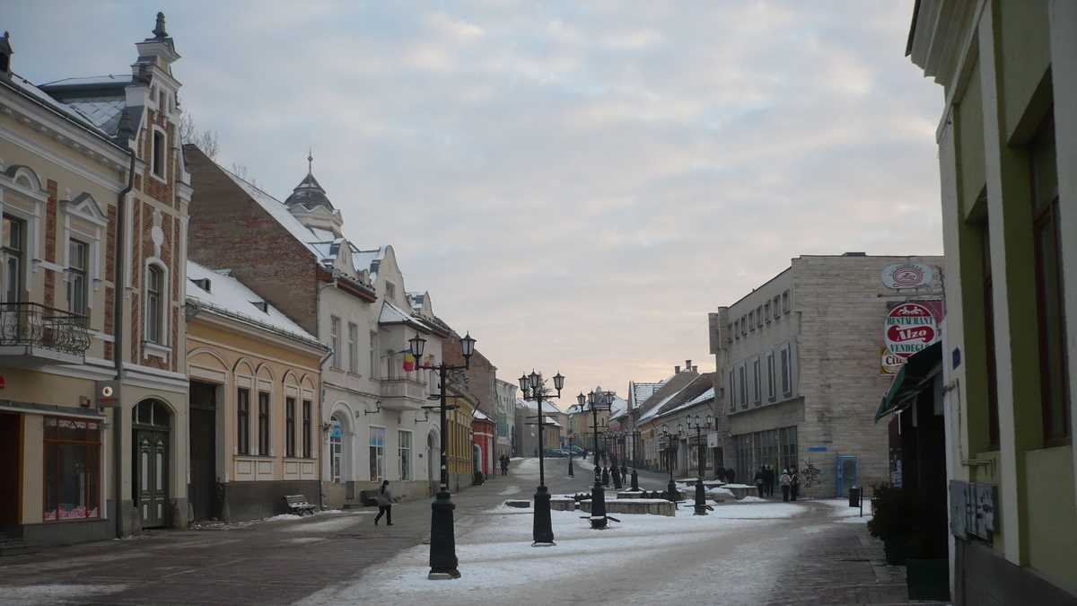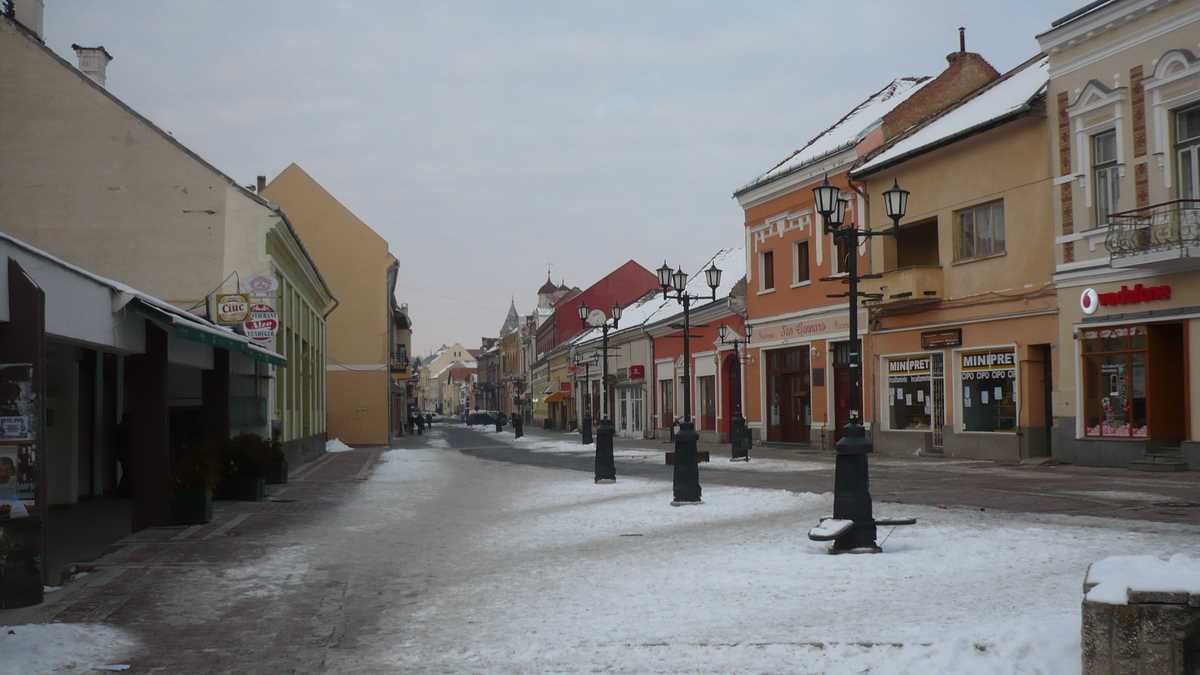 Era o după-amiază mohorîtă de iarnă, rece ca într-un congelator dat la maximum, iar orășelul pustiu prin care ne plimbam hai-hui se numea în ziua aia Duminica Ciuc. De la gară pînă în centru, doar peisaj clasic de blocuri comuniste, cu sedii de bancă și magazine (închise), la parter. Ici-colo, cîte o biserică. Nici măcar în jurul sălii patinoarului, o hurdubaie sinistră, cenușie, locul fostelor bătălii, pardon, meciuri de hochei Csíkszereda-Steaua, nu era mai multă animație. Din parcul vecin cu platoul pieței în care stau grămadă Casa de Cultură, Biblioteca, Poșta și mai toate instituțiile administrative ale orașului/județului, o pietonală betonată pleacă să se intersecteze în T cu singura parte a centrului care arată altfel decît cutiile de pantofi umplute cu cutii de chibrituri ale arhitecturii anilor ‘70-‘80: strada Petőfi, un fel de Lipscani ceva mai lată, pavată cu macadam, ale cărei clădiri, vechi case secuiești cu etaj, au supraviețuit sistematizării ceaușiste, mai mult sau mai puțin renovate (unele au primit un var în culori pastelate, altele au rămas cu fațada jupuită), dar iluminate din mijlocul străzii de felinare stil 1900, iarna.