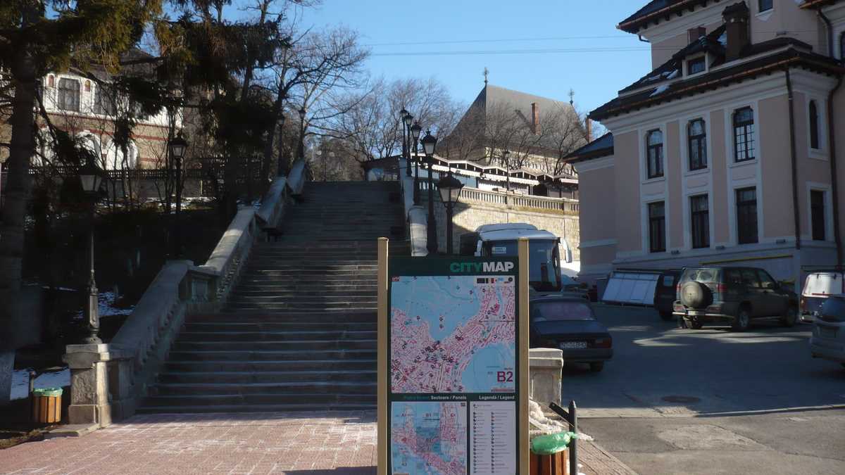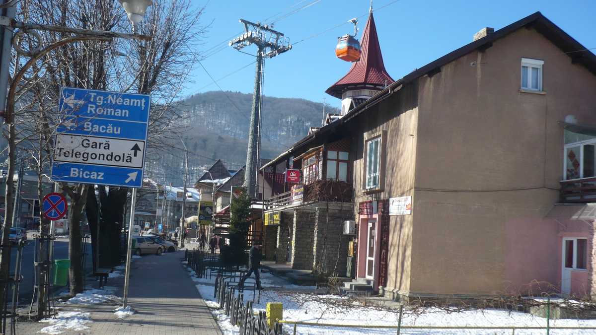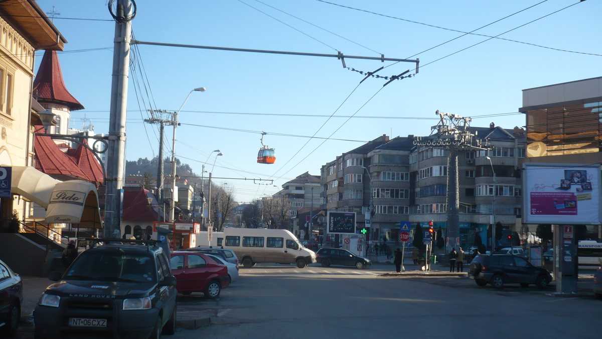 Dar poate te-ai plictisit de navigarea pe coordonate 2D, în plan, și vrei să vezi orașul și de pe axa Z. În mișcare, din telegondola care pleacă de la gară, traversează aerian orașul, la vreo 50 de metri de sol și la doar cîțiva de turlele bisericilor și balcoanele apartamentelor de la ultimul etaj (urcare plus coborîre – 20 de lei), sau de la punct fix, de pe terasa stației de sosire de pe dealul Cozla (665 m altitudine). Și, dacă tot ai ajuns aici, chiar și fără schiuri, dă o tură pînă la pîrtia cu nocturnă și telescaun. Faimosul, istoricul, chiar, telescaun devenit vedetă de presă și obiectiv turistic în sine, după ce, la inaugurare, a plimbat un ministru al Turismului care dă acum informații mai puțin turistice pe la DNA.