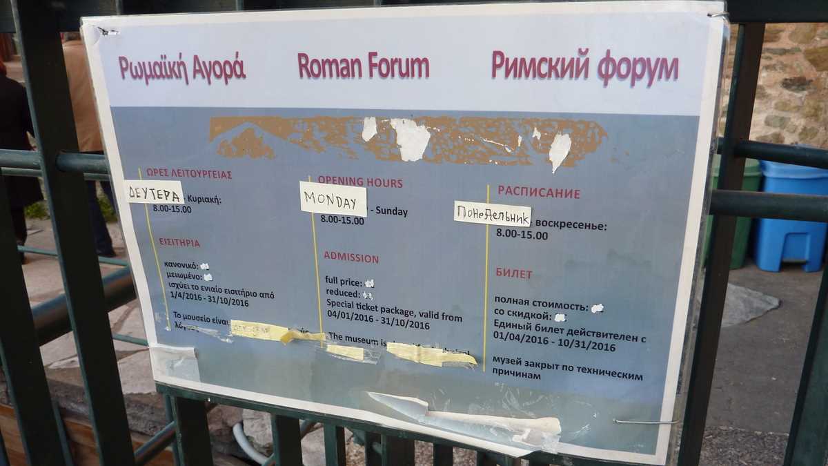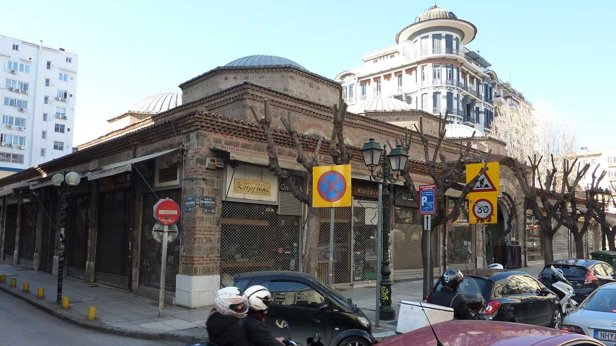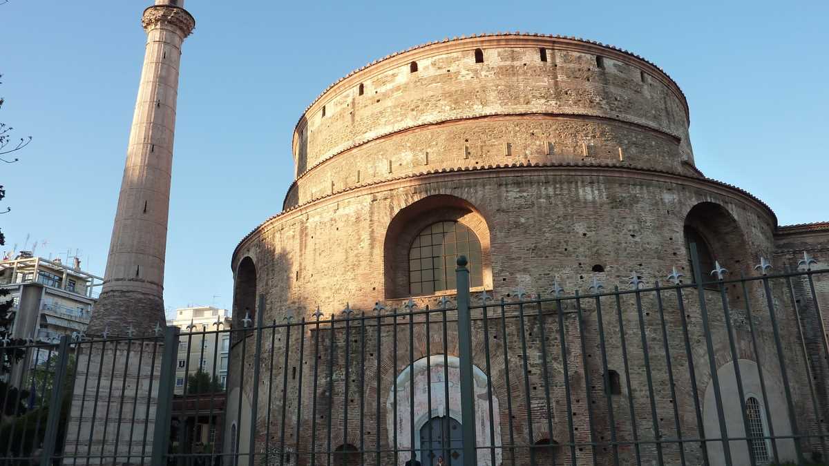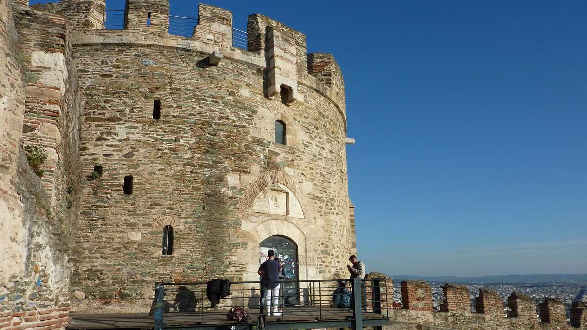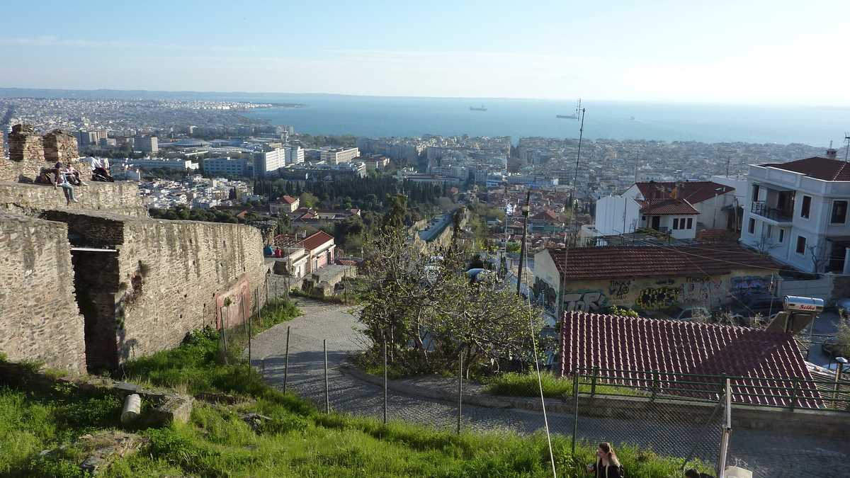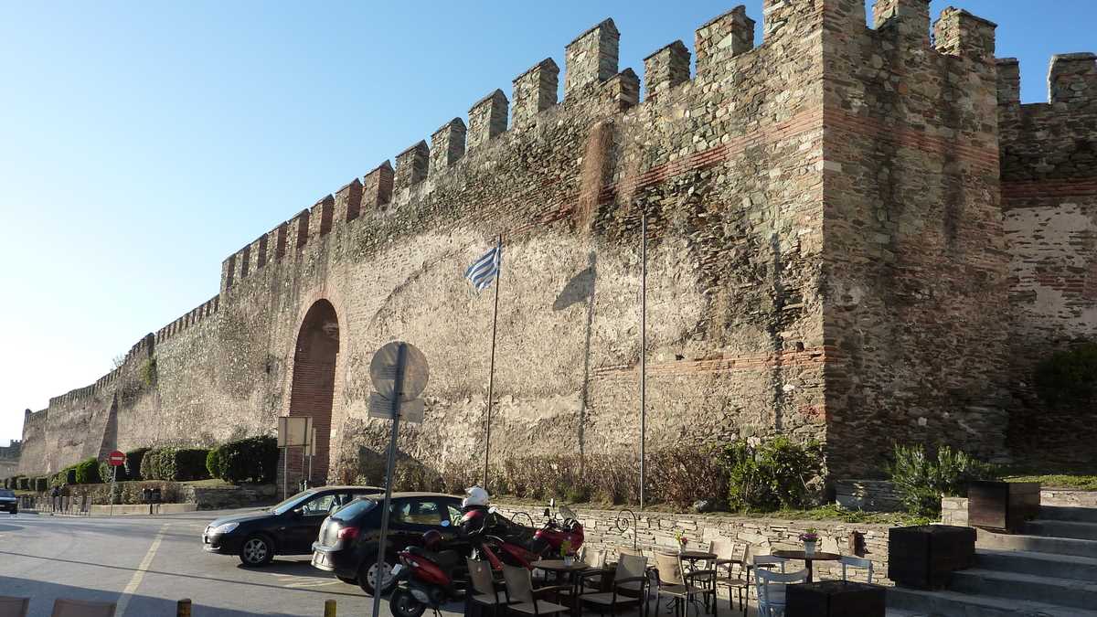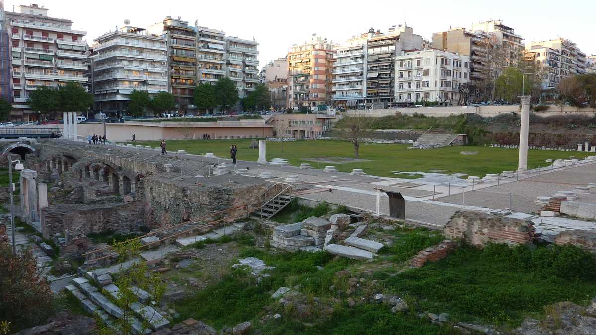 Cine are timp pentru o lecție de istorie o poate primi de la panourile explicative postate pe lîngă zidurile bizantine construite de Theodosios cel Mare prin secolul 4 și decorate cu marker-ul de iluștri anonimi din secolul 21. După ce te-ai săturat de văzut Orașul de Sus și orașul de sus, cobori înapoi spre centru pe străduțe pietruite, printr-un amestec interesant de arhitecturi (bizantină, otomană, greacă), mixaj modern de biserică antică fără tencuială cu minaret și băruleț pe terasă de clădire antebelică. Și o să citești alte și alte panouri. Noi am mai avut timp doar de Rotonda, templul ctitorit de împăratul Galerius, transformat temporar în moschee, cît timp au cîntat muezinii prin oraș, și de Agora romană, niște ruine dintr-o piață situată sub nivelul străzii, care pot fi văzute și de pe trotuar, dacă ai ajuns cumva după orele de vizitare.