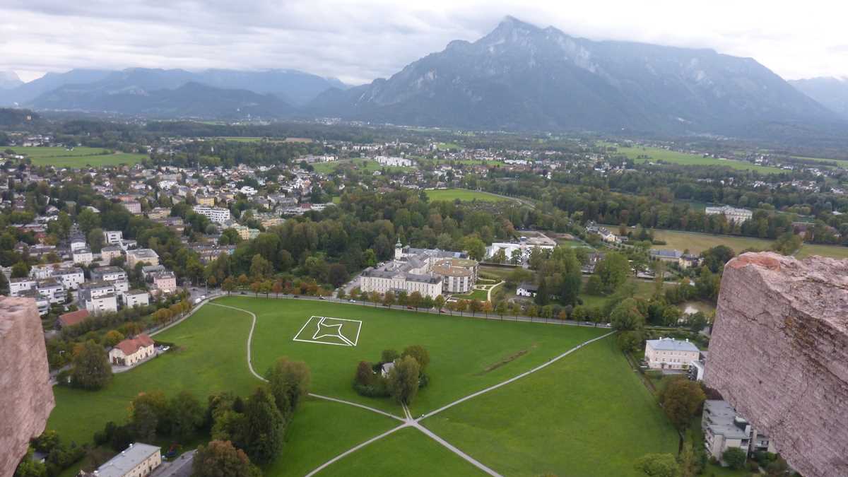 Desigur, nu poți pleca din Salzburg fără să vezi mai îndeaproape Hohensalzburg, castelul de secol XI care supraveghează impunător de pe o colină orașul (12,90 euro). Aici se ajunge foarte simplu, urcînd cu un funicular modern, practic, un lift pe cremalieră spațios, cu vreo trei cabine supraetajate. După o scurtă trecere în revistă a ofertei expoziționale a castelului, de la bustul lui Franz Josef din muzeul principal la cel al lui Pinocchio din muzeul marionetelor de sub arcade (două încăperi cu diorame stil teatru de păpuși), vei încheia vizionarea pe meterezele turnului de observație al fortificațiilor, pentru o vedere de 360 de grade a Salzburg-ului, pînă hăt, la Untersberg-ul urcat dimineață. Singura clădire importantă din oraș care lipsește din peisaj este chiar castelul.