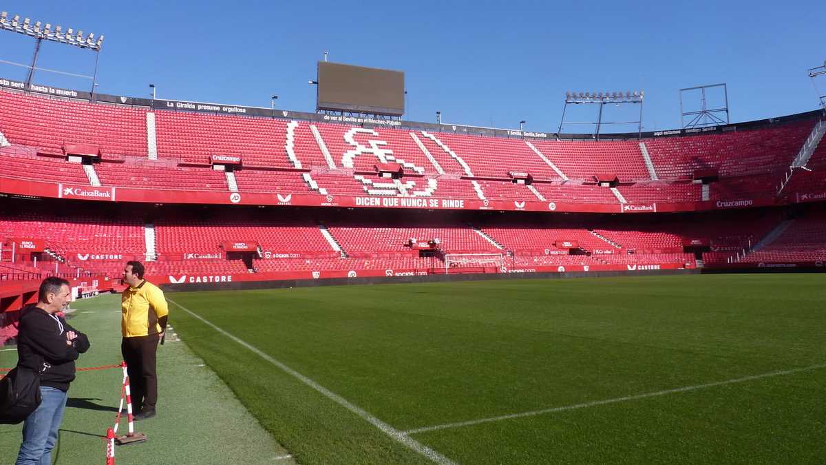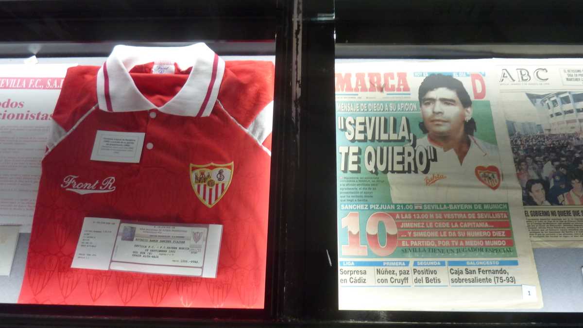 Înainte de toate, însă, primul loc de vizitat în Sevilla, ca român microbist (și, pe deasupra, și stelist pe stil vechi), este Ramon Sanchez-Pizjuan, stadionul finalei Cupei Campionilor Europeni din 1986. Turul costă 12 euro și începe în muzeul clubului FC Sevilla, în care vedete sînt cupele UEFA cîștigate în ultima perioadă și tricoul lui Maradona de la meciul de prezentare cu Bayern München din 28 septembrie 1992 (El Pibe D’Oro a jucat un sezon, înainte de retragerea argentiniană de la finalul carierei, la FC Sevilla, după ce devenise zeu la Napoli). Traseul mai cuprinde loja oficială, vestiarele în care Sergio Ramos și ai săi se dezechipează zilnic, sala conferințelor de presă, tunelul de acces pe teren, banca de rezerve a gazdelor, zona mixtă în care se dau interviurile de după meci și magazinul cu tricouri și suveniruri scumpe, doar pentru ultrași. (Nu știu cum m-au păcălit să fac o poză cu un Ramos virtual… Cert e că le-am dat 10 euro pe fotografia care mă aștepta printată, înainte de ieșire.) Chiar dacă stadionul a fost renovat de două ori de la momentul istoric – pentru fotbalul românesc – 7 mai 1986, poarta din dreapta, cum te uiți dinspre loja oficială, e tot acolo unde Duckadam intra în Cartea Recordurilor, apărînd patru lovituri de la 11 metri consecutive. Marea dezamăgire a vizitei e că această performanță nu-i menționată nicăieri. Angajații interpelați pe tema asta dau din umeri: ăsta-i muzeul clubului, nu al stadionului.
