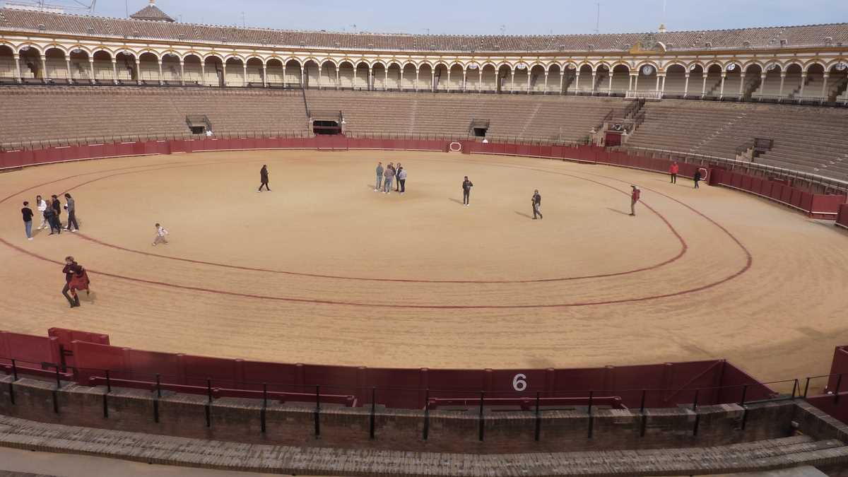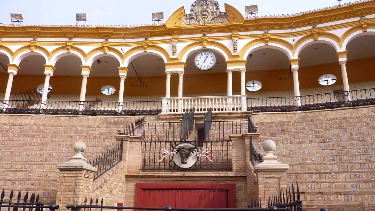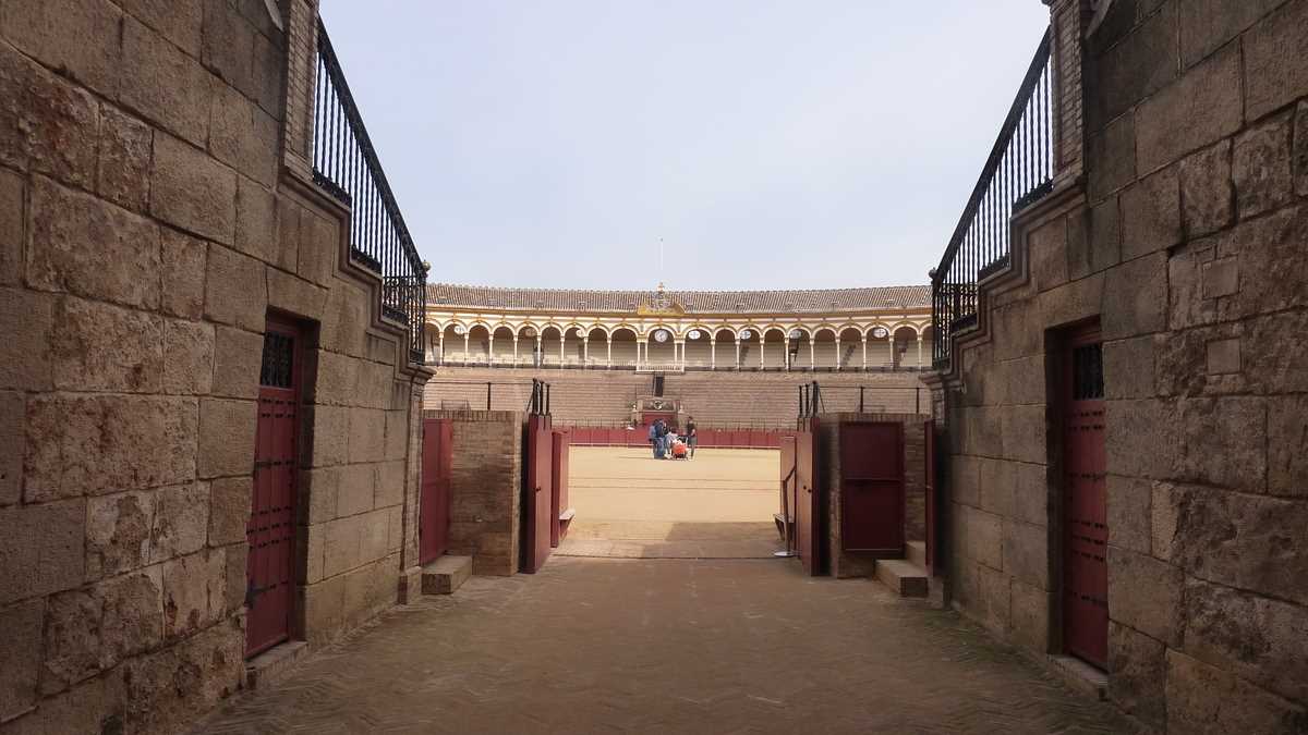 Drumul taurului spre abator trece, deci, în Sevilla, prin Plaza de Toros de Maestranza, arena circulară de pe malul Guadalquivir-ului cu mai multe porți și culoare îngrădite în partea inferioară a tribunelor, în care încap vreo 12.000 de spectatori. După ce-ai lăsat 10 euro la ghișeul intrării principale, poți umbla brambura prin spațiul interior mărginit de cordoane roșii, pe teren și printre gradenele de cărămidă marcate cu locurile spectatorilor sub care locuiesc expoziția cu costume de toreador, cape, fotografii, tablouri și un taur împăiat, niște grajduri, acum goale, și capela în care se roagă matadorii, înainte de confruntare, ca să nu fie luați în coarne.