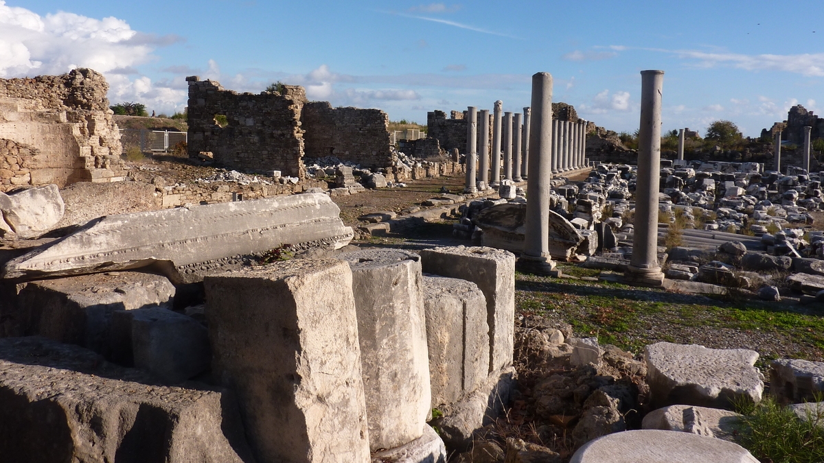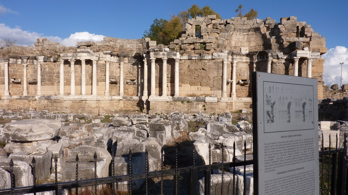 În excursia din ultima zi de dinaintea plecării spre țară, ghidul local, leit Răzvan Burleanu, șeful FRF, ne-a dus să vedem și partea veche. Ruinele orașului antic cu nume de fruct (Side înseamnă rodie, în limba băștinașilor aciuați pe-aici încă din Epoca Bronzului), fostul port important pe rutele comerciale maritime ale antichității întemeiat de coloniștii greci, în secolul VII î.Cr., pe o limbă mică și îngustă de pămînt înfiptă în mare. Spațiu prea geo-strategic – cum se spune prin analizele politice ale prezentului –, ca să rămînă nedisputat de puterile în expansiune ale momentului. După greci au venit, pe rînd, Alexandru cel Mare, romanii, în perioada lor de apogeu a imperiului, niște pirați, care se ocupau, printre alte activități lucrative, și cu negoțul de sclavi și, chiar la sfîrșit, arabii, care au incendiat, la aniversarea sa de aproximativ 1.400 de ani, orașul, abandonat ulterior de locuitori, și i-au stins ultimii lumina. Vreun mileniu și ceva, pînă la repatrierea oarecum forțată a turcilor stabiliți în Creta, la sfîrșitul secolului al XIX-lea.