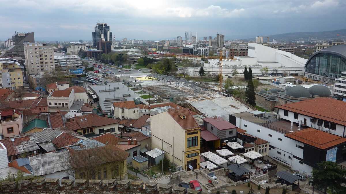 Dar să lăsăm politica și să ne întoarcem la turism. După ce-ai traversat în lung și-n lat centrul încă în reconstrucție, în care vreo macara sau cîteva schele fac parte din fiecare fotografie, plimbîndu-te prin pădurea de statui (pe lîngă anonimii mai sus menționați, Alexandru Macedon pozează în multiple variante, ecvestre sau nu), o să urci la cetatea care domină de pe o colină orașul, pe lîngă un minaret din care o să auzi chemarea la rugăciune a muezinului – jumătate de mileniu de stăpînire otomană a lăsat urme adînci într-un oraș cu majoritate creștină (ortodocși, 70%), în care s-a născut Maica Teresa; dacă te interesează, există o casă memorială dedicată sfintei marcată – cum altfel? – cu o statuie în față.