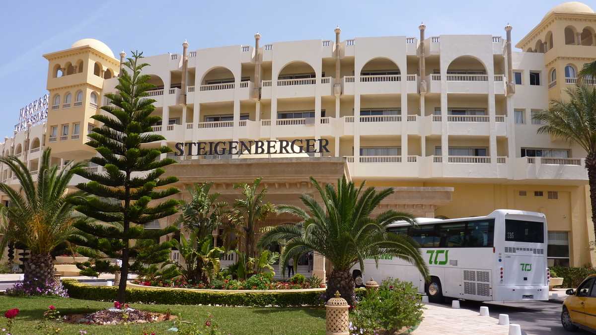 Din Sousse ne-am deplasat și spre nord, la Hammamet, și spre sud, la Mahdia (cum ar veni, din Eforie Nord, și în Mamaia, și în Mangalia), alte două stațiuni ale litoralului tunisian la Mediterană care, văzut din autocarul excursiilor de vizitat hoteluri, arată neașteptat de modern și relativ îngrijit, comparativ cu binecunoscutul standard african de curățenie. Plaje lungi cu umbreluțe cochete, hoteluri care par noi, terenuri de golf, centre spa, cluburi de noapte, cazinouri, toate asortate cu specificul spirit local: vînzători stradali care-și întind marfa (de la farfurii și oale de ceramică la fructe și haine sh) pe tarabe sau direct pe trotuar, în fața cafenelelor în care bărbații stau la taclale, ore în șir, la un ceai, spectatori ai traficului colorat, cînd și cînd, de caleștile cu coviltir roz ale vizitiilor care plimbă turiști. Doar aici ai ocazia să faci poze cu cămila, pe plajă, sau cu elefanții călăriți de Hannibal și ai lui, în față la Carthage Land, parcul de distracții în care o să te dai, probabil, și cu covorul fermecat adus de duhul din lampa lui Aladdin.