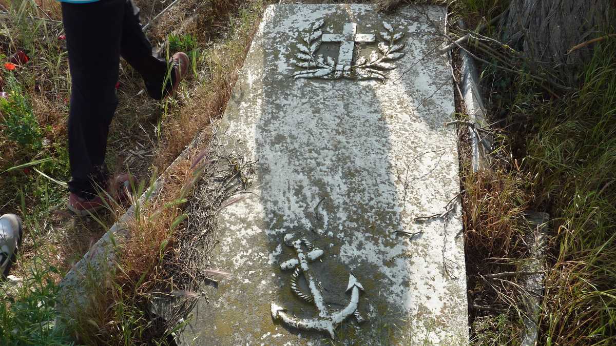 De la far la cimitir distanța nu-i foarte mare, cam de la viață pe apă la moarte pe uscat. Vreo doi kilometri de pămînt nou călcat cu pasul pînă la Cimitirul Maritim multiconfesional (creștin – protestant, romano-catolic, ortodox, ortodox de rit vechi –, musulman, evreiesc), aflat, la săparea primelor gropi, pe țărmul mării, în care sînt cazați de-a valma diverși străini pe care moartea i-a surprins aici. Pe cruci și pietre funerare, printre nume de marinari și ingineri britanici, suedezi, italieni, poți citi epitafuri devenite legende. Cele mai vizitate morminte sînt cele ale căpitanului William Webster și iubitei sale Margaret Ann Pringle, îndrăgostiții înecați la 25, respectiv, 23 de ani, acum fix un secol jumate (21 mai 1868), cel al prințesei Ecaterina Moruzi, născută la Istanbul și decedată la Sulina, în 1893, și, desigur, cel al piratului mort la 25 martie 1871. Singura piatră de mormînt din România marcată cu craniul și oasele încrucișate e a lui Ghiorghios Kontoguris din Kefalonia, grecul care a jefuit zeci de vase comerciale prin metoda vacii liniștite: felinarele atîrnate de parul legat între coarnele unor vite care pășteau în întuneric păreau de departe lumini de vase ancorate în port și, pînă la naufragiul în malul nisipos al Sulinei, nu mai era decît o decizie proastă de căpitan chior și/sau beat.
