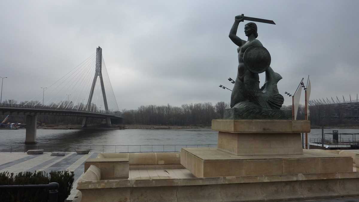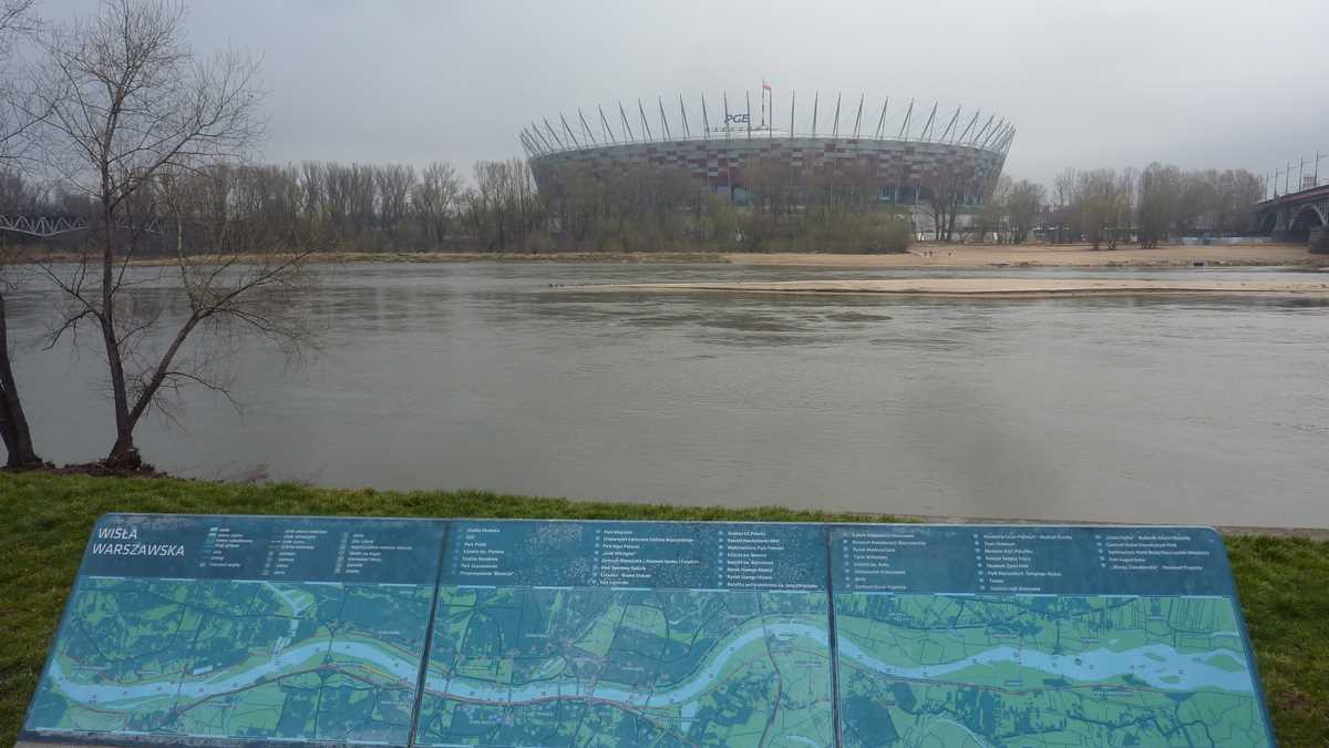 • Malurile Vistulei, însă doar pe porțiunea dintre Complexul Copernicus și celebra Syrena Warszawska, războinica sirenă de bronz din legenda și de pe stema orașului, de unde ai vedere peste Wisla spre Stadionul lor Național. Spre deosebire de alte orașe cu rîu prin bătătură căruia i s-au accesorizat malurile cu pontoane, puncte de închiriat bărcuțe, baruri și alte locuri de dezmăț turistic, Varșovia nu pare să aibă așa ceva pe Vistula, cu excepția zonei betonate din vecinătatea Muzeului Copernicus, a plajei de pe malul opus statuii și a vasului-restaurant Atalanta acostat la promenada de pe faleză (or mai fi și altele, vara, nu zic). Oricum, incomparabil mai mult decît Bucureștiul, care n-are nimic amenajat pe Dîmbovița, în afara plaselor de pescuit gunoaie și cadavre de cîini de sub unele poduri.