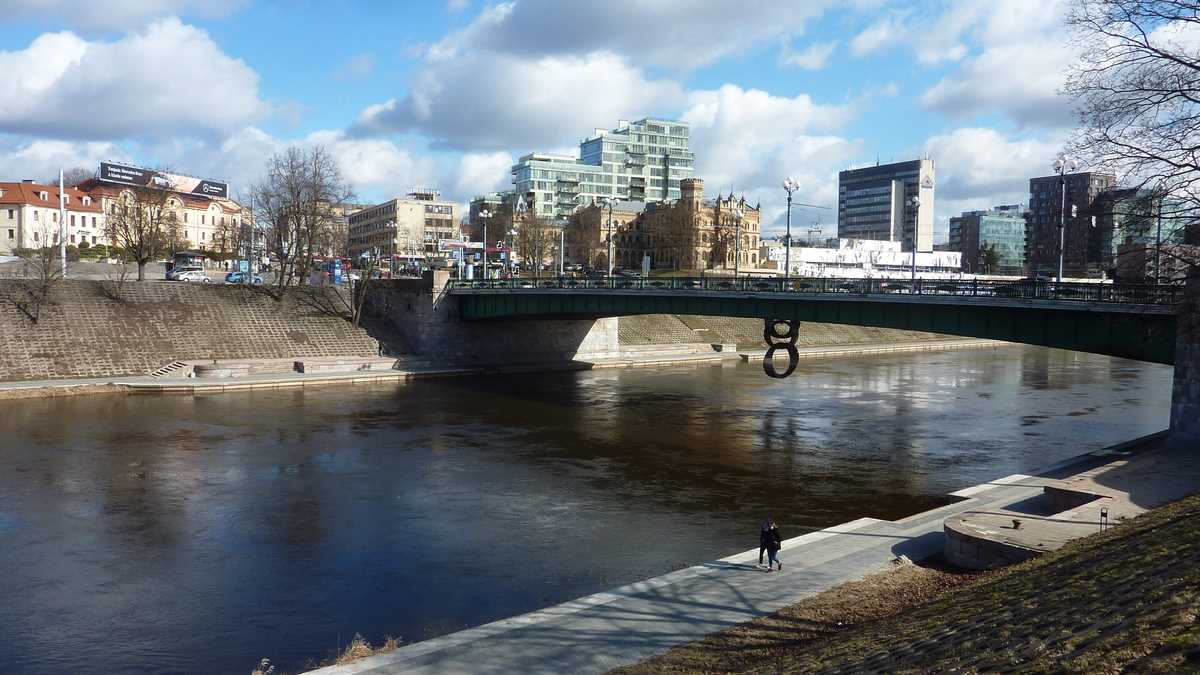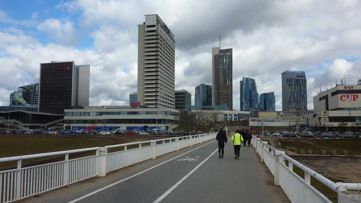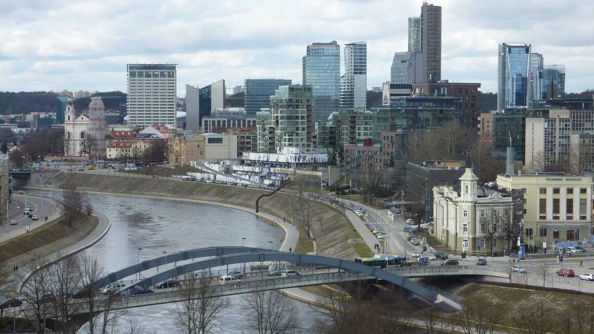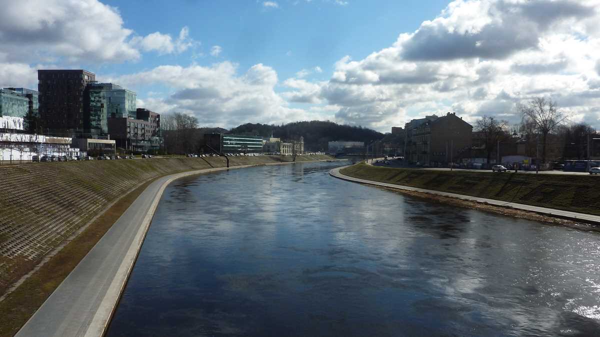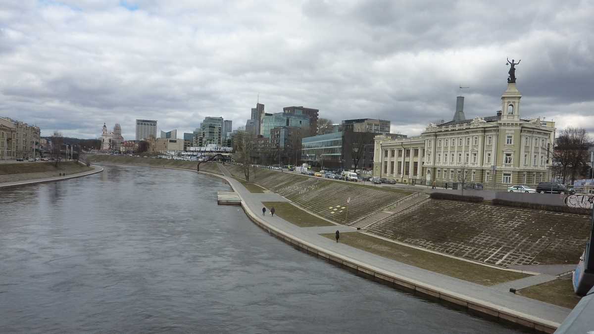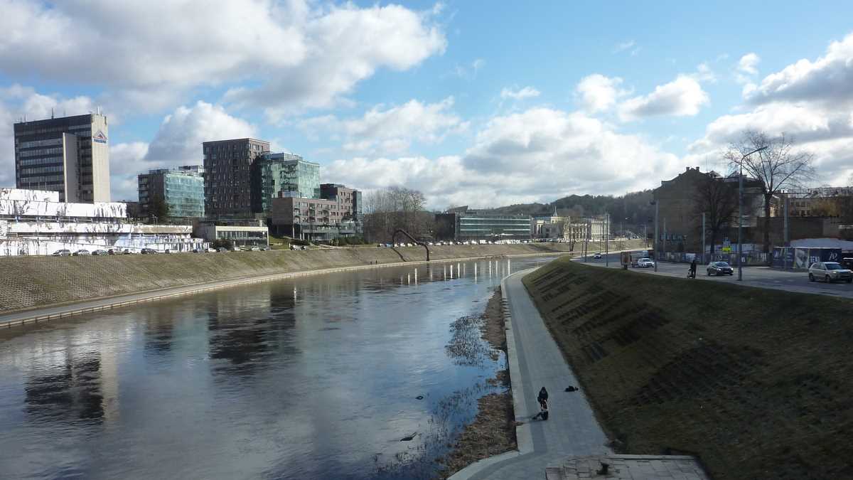 Revenit în prezentul mai puțin sinistru, se pare că, exceptînd unele trolee arhaice, ieșite din fabrică la moartea lui Stalin, orașul s-a scuturat de moștenirea sovietică: e curat, are spații verzi, trotuare și fațade îngrijite, arată foarte european. Mai ales dacă, aflat la promenadă pe faleza rîului Neris, care traversează est-vest latura nordică a centrului, te uiți peste apă spre cartierul nou de business de la ale cărui etaje superioare se vede, prin ochii corporatistului, o capitală prosperă de țară UE.