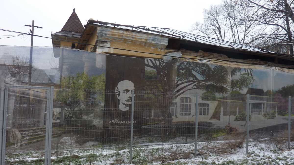 Numai că onoarea asta nu înseamnă mai nimic dacă urbea nu ți-o respectă. Cîteva sute de metri mai încolo de statuia sa din fața Casei de Cultură ce-i poartă numele, kilometrul zero al orașului, cea mai veche construcție băcăuană cu venerabila vîrstă de circa 250 de ani, în care însuși poetul susținea, în 1856, că s-ar fi născut, se află actualmente într-un avansat proces de degradare. Înconjurată de blocuri comuniste, cu intrarea între un bătător de covoare, poartă de fotbal a puștilor din incintă, și niște rufe puse la uscat pe sîrmă, Casa Alecsandri, cum e (re)cunoscută de memoria comunității, suferă stoic, cu ferestrele bătute în scînduri și zidurile sfîșiate, în aceeași stare deplorabilă ca și clădirea anexă cu geamuri sparte și pereți prăbușiți devenită locuință de noapte pentru oamenii străzii, care, încercînd să se încălzească, fac foc în interior, incendiind-o periodic.