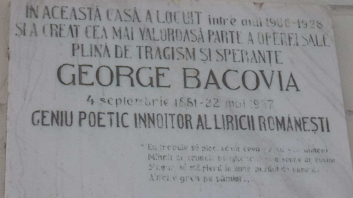 Nimeni n-a ridicat în rang cuvîntul plumb mai mult decît a făcut-o sensibilul George al Bacăului de început de secol XX, poetul care a înnobilat metalul dens devenit sinonimul stărilor sale tragice. Cînd e mai potrivit să-i faci o vizită decît într-o zi cenușie de februarie cu cer acoperit și plumburiu? (Poate pe o ploaie de noiembrie…) Deci iată-te în Bacău, pe strada botezată acum după el, la numărul 13, locul unde l-au așteptat părinții, în 1906, pe studentul facultății bucureștene de Drept întors acasă în vacanța de Paști, care se dusese mai întîi la apartamentul alăturat magazinului de coloniale și băuturi spirtoase din centru (dărîmat în anii ’70), în care s-a născut: tatăl, negustorul Dimitrie Vasiliu, cumpărase clădirea de la vechiul proprietar și îi făcea astfel o frumoasă surpriză de casă nouă. Aici a traversat perioada prolifică de creație a părții celei mai valoroase a întregii opere, aici s-au născut volumele Plumb (1916), Scîntei galbene și Bucăți de noapte (1926), aici a locuit pînă la căsătoria tomnatecă cu Agatha Grigorescu, din 1928, cînd cuplul s-a mutat la București.