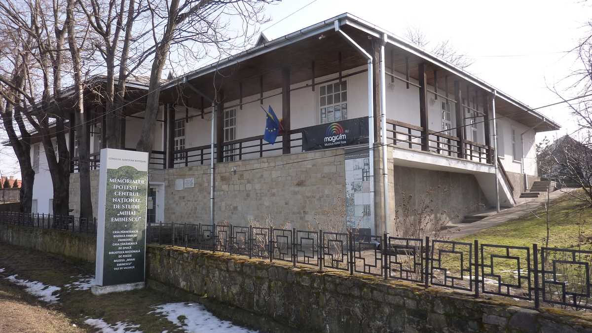Această scurtă biografie se derulează fragmentat în minte în timp ce parcurgi meditativ aleile Memorialului Ipotești – Centrul Național de Studii Mihai Eminescu, denumirea oficială a complexului muzeal întins pe trei hectare, care, pe lîngă casa părintească, mai cuprinde bisericuța familiei cu cristelnița în care-a fost botezat și masca sa mortuară (practic, alfa și omega vieții sale), căsuța-expoziție etnografică ale cărei două încăperi au fost amenajate comparativ, una boierească, alta țărănească, în stilul perioadei de început de secol XIX, amfiteatrul în aer liber în care se recitau poemele festivalului organizat în fiecare vară înainte de pandemie, biblioteca națională de poezie, muzeul tematic stilizat axat pe viața și opera eminesciană. Pînă la criza turismului declanșată de COVID-19, ajungeau aici 15-16.000 de vizitatori anual; în 2020, numărul lor a scăzut la mai puțin de 4.000.
