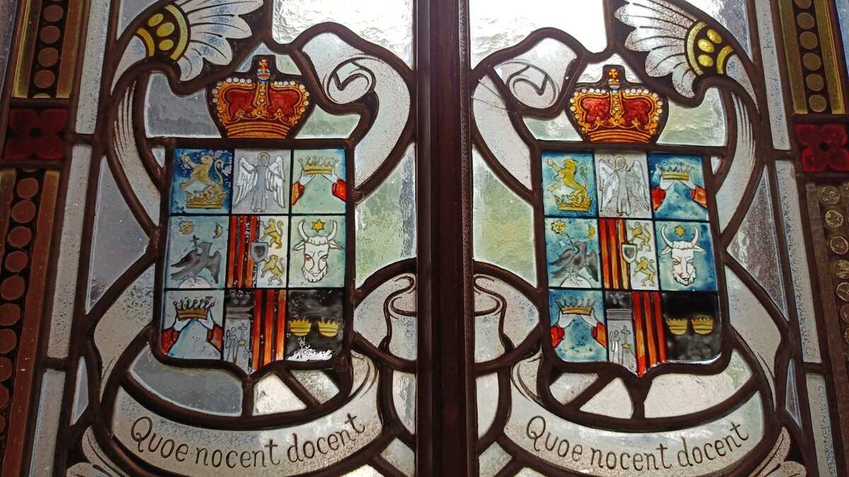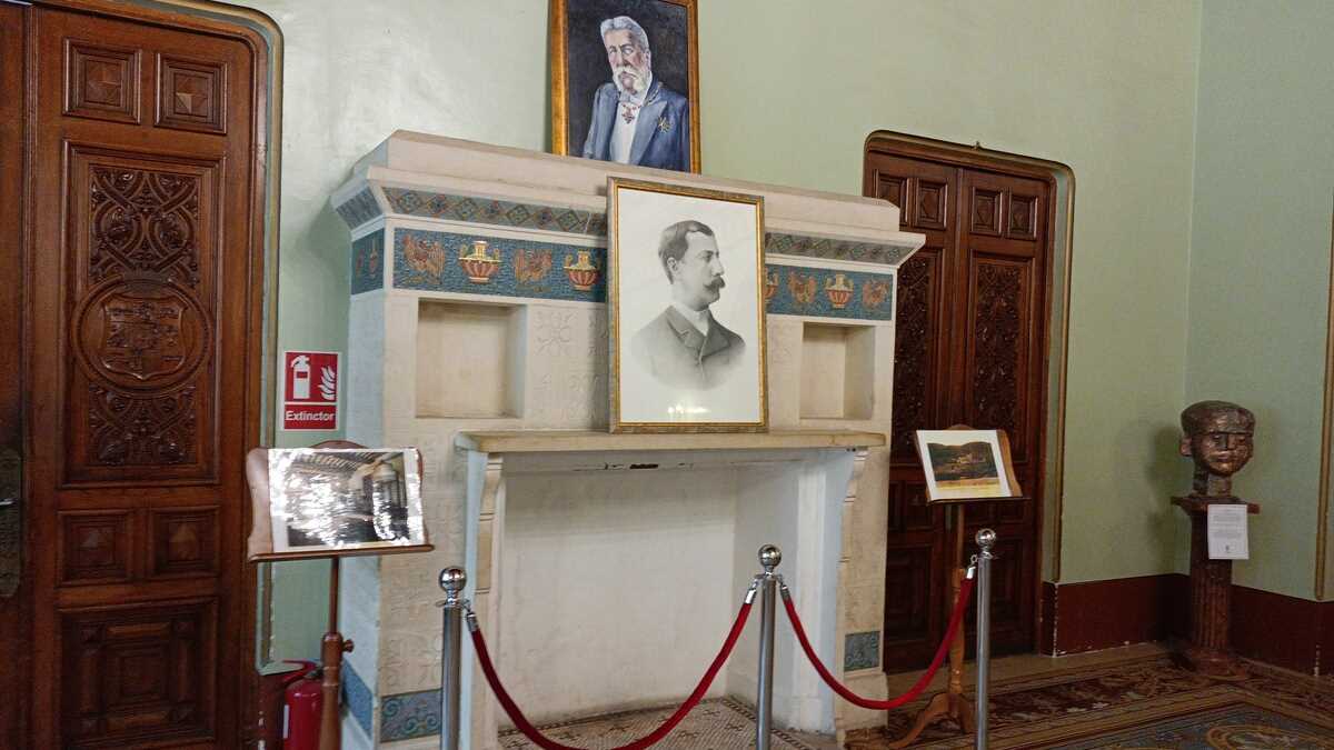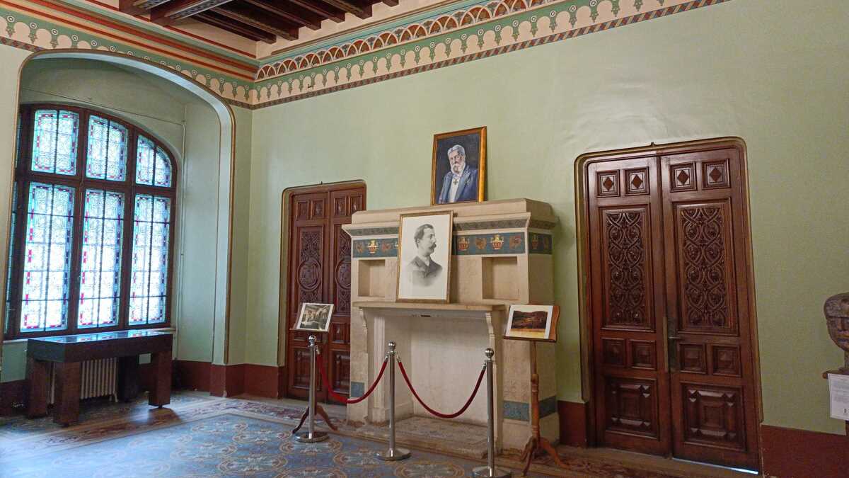 Din holul principal de primire se deschid ușile camerelor de lucru, biblioteca, biroul și sala de audiențe (chiar dacă era reședință de vară, prințul primea permanent la castel vizitele colaboratorilor). Niște încăperi care mai au acum doar vitraliile cu blazonul și motto-ul familiei, în latină – Quoe nocent docent, „Necazul te învață“ –, și, în birou, fotografii de la evenimente importante, lîngă portretele membrilor familiei: Nababul, a doua sa soție, Ecaterina Băleanu, și cinci dintre cei șase copii ai lor, între care băiatul cel mare, Mihai, căsătorit cu Maruca Rosetti-Tescanu, viitoarea doamnă Enescu, după moartea soțului într-un accident de automobil.