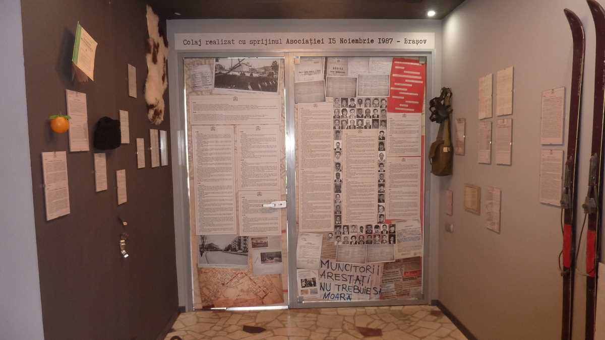 După ce-ai trecut de ușa clădirii din prelungirea celebrului hotel Aro, cu fațadă spre colțul parcului central, urci la etajul 1 și nu trebuie să stai la coada din imensul fototapet care colantează holul, ca să intri într-un spațiu al amintirilor de mult uitate pentru o călătorie în timp de cel puțin 34 de ani spre România socialistă. Bine structurat, de la paranoia spațiului public, în sala mare, cu imagini de la locurile de muncă și de la manifestările culturale în masă ale propagandei regimului, puse în contrast cu cazurile de emigrare ilegală, sau jurnalele TV de arhivă din salonul de proiecție la atmosfera casnică a interiorului unui apartament de bloc comunist: camera copiilor, cu rechizitele școlare, jocurile, jucăriile și celebra poză din prima zi în clasă, peretele femeii, cu tragediile foarte personale ale avorturilor provocate la limita sinuciderii, mica bucătărie cu mobilier din epocă și sertare pline cu rețetele gospodinei care trebuia să facă minuni culinare din puținele ingrediente aduse în plasă de la Alimentara, după așteptarea la niște cozi imense. Înainte de ieșire, în sala mică, după ce te încarci cu ultimele imagini și informații despre cum erau prezentați Ceaușeștii, cum era controlată religia și ce însemna PCR pentru români, te eliberezi părăsind spațiul concentraționar prin colajul foto documentar al Asociației 15 Noiembrie 1987, odată cu revolta muncitorilor de pe platforma industrială a Brașovului care a adunat o parte a tensiunilor din societate culminate în Revoluție.