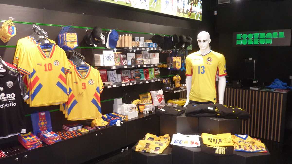 Vizita se încheie, sărind spațiul de evenimente private și conferințe de presă de la etajul 4, la parter, lîngă bar și bistrou, în fan shop-ul cu merchandising, articole promoționale, cu reclama muzeului, sau oficiale, de la cam toate cluburile românești importante ori ale Generației de Aur (printre ele, gama de mănuși de portar Helmut Duckadam), și collectibles, care, teoretic, își cresc valoarea în timp, ca investițiile în tablouri. Depinde de obiect, însă: de exemplu, cu doar 1.000 de lei, un colecționar poate achiziționa tricoul original de la Ajax Amsterdam purtat de Mitea. Foarte puțin, pînă a devenit din fotbalist vedetă de tabloide.