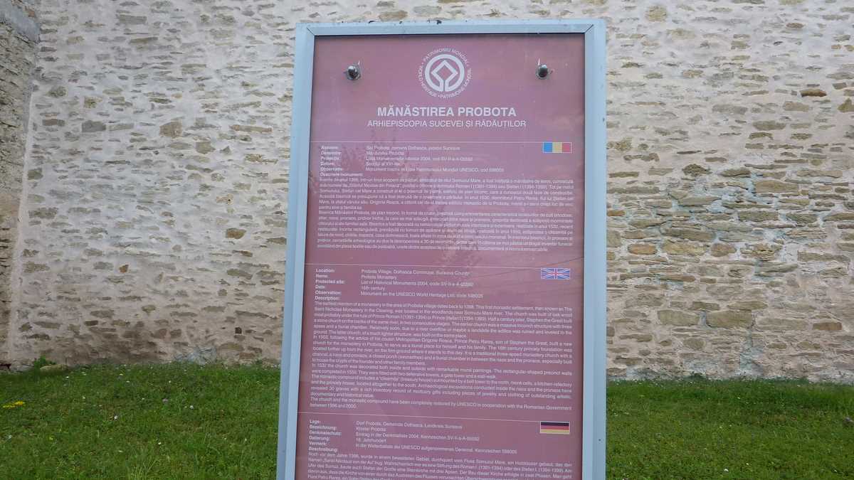 Printre bisericile pictate din nordul Moldovei, premiate, în 1993, cu înscrierea pe lista monumentelor UNESCO (Voroneț, Humor, Sucevița, Moldovița, Arbore, Pătrăuți, Sfîntul Ioan cel Nou de la Suceava), se numără și Probota. Mănăstirea ctitorită, pe la 1530, de domnul Moldovei, Petru Rareș, fiu al lui Ștefan cel Mare, menită a fi necropolă voievodală, loc de odihnă veșnică pentru familia Rareș.