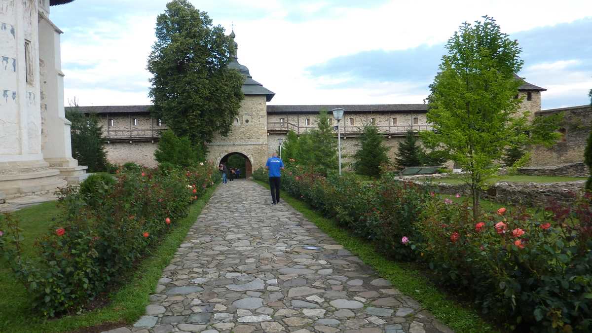 Mult mai puțin vizitată decît celebra Voroneț, complet în afara rutelor turistice maninstream (pe undeva pe lîngă Dolhasca), practic, necunoscuta publicului larg Mănăstire Probota își trăiește eternitatea ecumenică într-o liniște de anonimat cultural, ferită de tumultul vieții mirenilor de niște ziduri groase înalte de șase metri. Arată așa de la moartea lui Petru Rareș (1546), cînd, la porunca soaței sale, Doamna Elena, biserica este închisă după un parapet gros din piatră de rîu aproape pătrat, cu laturile de aproximativ 90 de metri, cu metereze, creneluri și turnuri defensive de cetate medievală. Fortificarea asta n-a ajutat prea mult, în 1622, cînd niște tîlhari jefuiesc mănăstirea, incendiind unele clădiri și profanînd mormintele. Cîțiva ani mai tîrziu, domnitorul Vasile Lupu (1634-1653) reface parțial zidurile de incintă, turnurile de colț sau acoperișul bisericii și construiește o a doua casă domnească din care, astăzi, au mai rămas doar niște ruine.