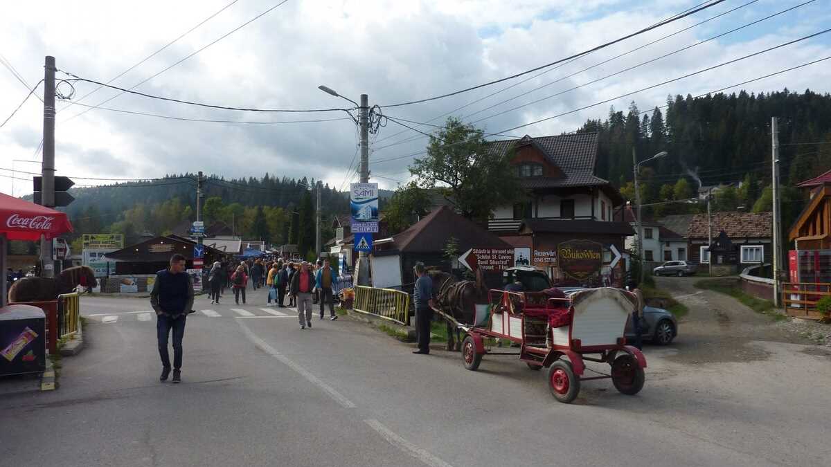 Din parcarea în care, odată coborît din mașină, ești invitat insistent să urci în trăsura intreprinzătorului local – fosta căruță upgradată, tunată cu roți de mașină și bănci tapițate cu perne –, mai sînt de mers pînă la mănăstire doar cîteva sute de metri. Pe bucata de șosea transformată în arteră pietonală și bazar, printre tarabele cu artizanat, kürtos, ouă încondeiate, ii, bundițe, cojocele, străchini de lut, magneți de frigider, linguri de lemn, carpete, șosete din lînă, papuci, jocuri de table și alte suveniruri, toate, desigur, tradiționale. Bîlciul ăsta e semănat, din loc în loc, cu indicatoare spre mulțimea de pensiuni care așteaptă, nerăbdătoare, portofelele clienților (fiecare gospodar din zonă are, probabil, măcar o cameră de închiriat prin casă).