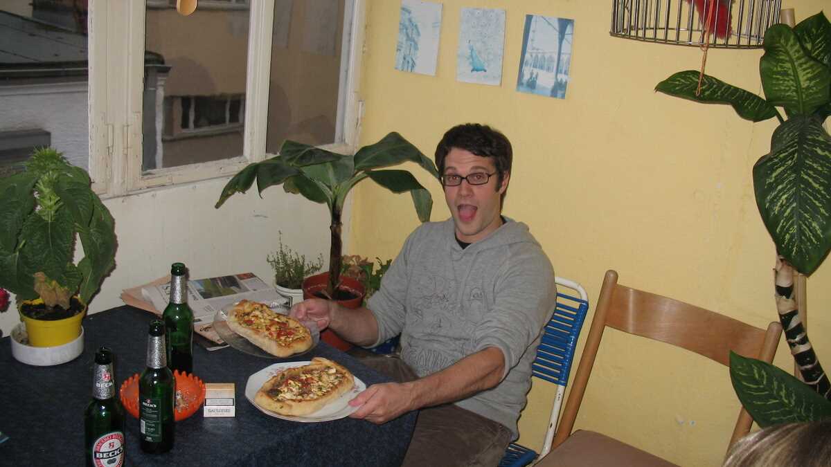 Îmi aduc şi eu modesta contribuţie la proiectul comun: tai o roşie, spun un banc (mă rog, a joke) şi, cînd să mă topesc spre balcon, unde e cazată berea, mă trezesc cu o bucată de aluat în mînă: Make your own pide! Faza pare decupată din episodul din Seinfeld în care una dintre multele idei ale lui Kramer consta în deschiderea unui restaurant în care clienţii să-şi facă singuri mîncarea (iată că s-au găsit unii s-o şi pună în practică). Pentru că, dacă nu ştiam ce-i plata nemţească, urmează să aflu: Leman îşi recuperează banii cheltuiți la supermarket, împărţind suma la numărul de participanţi, iar trupa cotizează scurt, fără comentarii. 3,50 euro, pentru pide pe săturate şi trei beri, not so bad…
