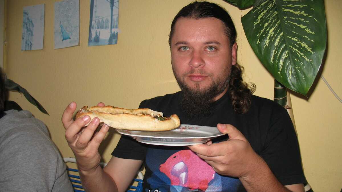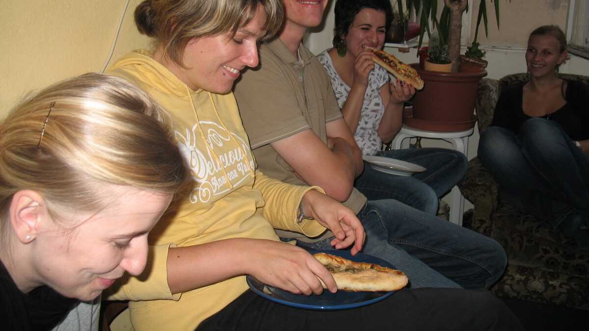 După pupăturile de bun-găsit, aflu că sîntem așteptați acasă la Leman, prietena ei turcoaică, unde gaşca lor, vreo zece oameni, se strînge pentru cină. Încă de pe la prînz, pentru a o găti mai întîi, într-un fel de Masterchef, faza pe cartier. Meniul jam-session-ului culinar din seara asta? Bere și pide, o variantă turcească de pizza cu marginile rulate în formă de barcă pneumatică și topping foarte divers: mix de legume, carne tocată, brînză, ciocolată, ardei iuți… cam orice se mai găsește prin frigider.