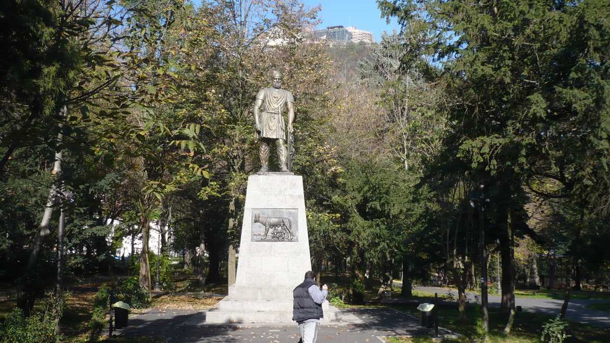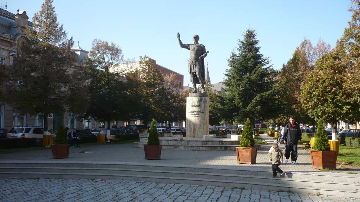 O promenadă de duminică prin centrul Devei e o continuă pendulare între Decebal și Traian. Pe bulevardul dintre Casa de Cultură și Primărie, între versiunile din bronz ale părinților neamului postate în cele două piețe principale ale orașului: în Piața Victoriei, un Decebal fioros, călare pe cal, cu un cap de lup înfipt în par (o poză lîngă el e dificil de realizat: trebuie să escaladezi soclul) – în Piața Unirii, un Traian cu un catastif într-o mînă și cu un (parcă) microfon în cealaltă, surprins, probabil, într-un moment în care se adresa mulțimii strînse în fața Primăriei, la coada pentru ajutoare sociale.