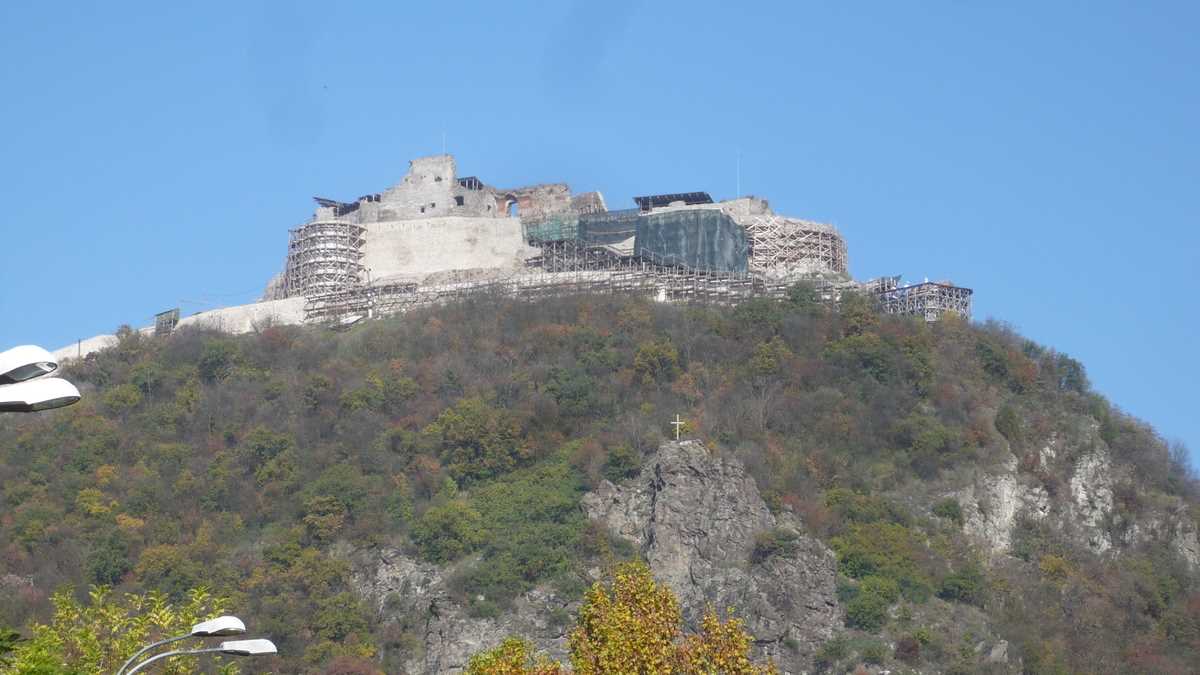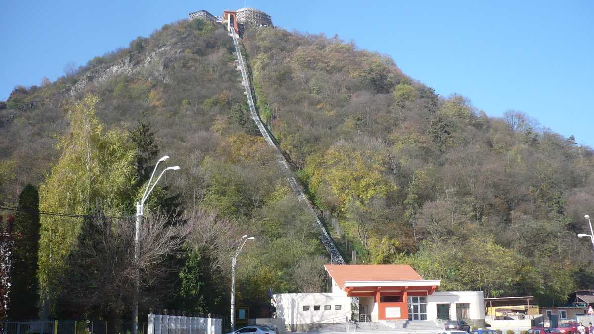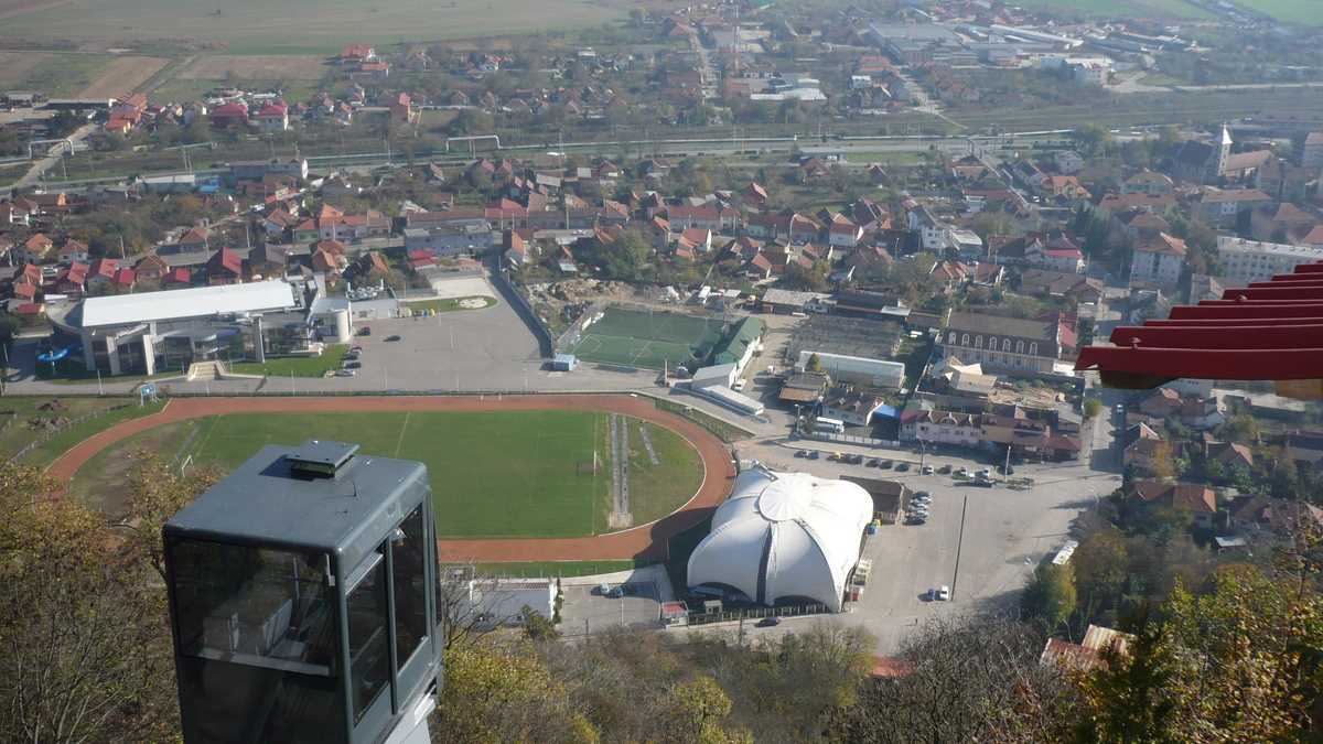 Dacă tot ești în zonă, cel mai probabil, o să urci Dealul Cetății cu telecabina. Mai exact, minitelecabina (nu încap în ea mai mult de șase persoane), un fel de lift scos de pe casa scării și atîrnat pe deal, care pentru o excursie pînă la ultimul etaj îți ia, dus-întors, 10 lei. Ai ajuns aici mai mult ca să pozezi orașul de sus, pentru că Cetatea, niște ruine înconjurate de schele și scări din lemn, poate fi vizitată doar pe un traseu scurt, semănat cu panouri de avertizare “Atenție, vipere!“, de la automatul de cafea și chioșcul cu suveniruri pînă la o platformă între ziduri, pe care nu există nici o statuie: aia albă, ghemuită, nu-i ce pare. E un boschetar pe care l-a prins înghețul fix în momentul în care făcea un selfie mai moale.