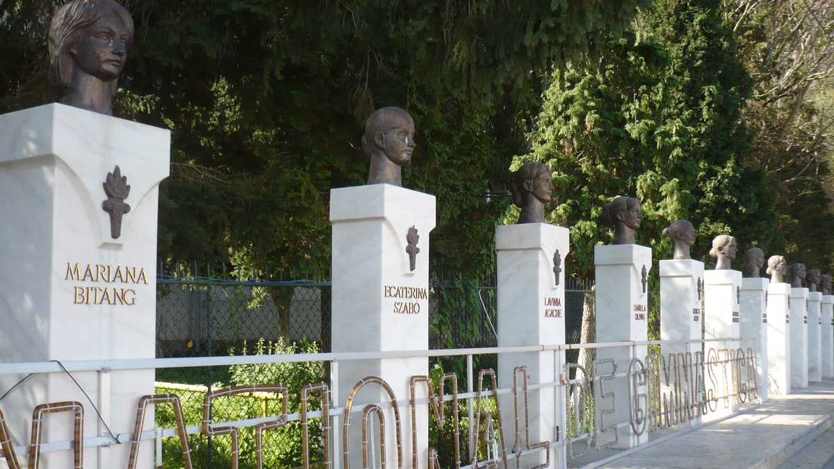 Bun, după ce te-ai tras în poză și cu Traian copiindu-i postura, ții tot înainte pietonala care taie Centrul Vechi și dă în Parcul Cetății. La intrarea în parc, îți pozează un alt Decebal, de data asta pedestru, cu fes pe cap, dar îmbrăcat cam subțire, care are un snowboard rezemat cool de un picior. Scuze, un scut (de departe, din unghiul din care vii, așa pare). Ceva mai încolo, în fața Muzeului Civilizației Dacice și Romane, te așteaptă la cadru Horia, Cloșca și Crișan. Nu insista, nu dau autografe – sînt la bustul gol, fără mîini. Pe o alee mai retrasă, ai un Eminescu trist, în poziție de drepți, foarte potrivit pentru o pagină de puști emo. La ieșirea din parc, te întîlnești cu alte celebrități: soții Karolyi, Belu, Bitang, Nadia Comăneci & Co. Te poți selecționa, deci, în lotul național de gimnastică, aliniindu-te cu capetele din bronz înșirate lîngă gardul Sălii Olimpice, pentru fotografia oficială. Cam astea sînt cele mai importante selfies de bifat; ar mai fi doar busturile cîtorva personalități locale, niște obscuri cu care nu se pozează nimeni.