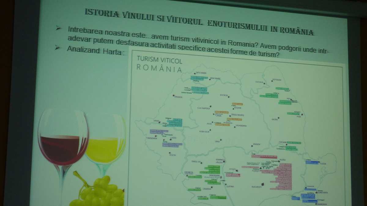 Turismul viticol înseamnă mai mult decît o vizită ghidată în cramă, unde specialiștii îți prezintă procesele tehnologice, finalizată, la ieșire, cu degustarea unui pahar cu vin. Diana Dumitru, jurnalist de profil la publicația Vinurile României, aduce în discuție complexele viticole cu ofertă turistică extinsă (diverse posibilități de agrement, cursuri în domeniu, oenoterapie – băi și masaj cu vin) și face o comparație concretă de tururi de crame, în Italia, Franța și România: