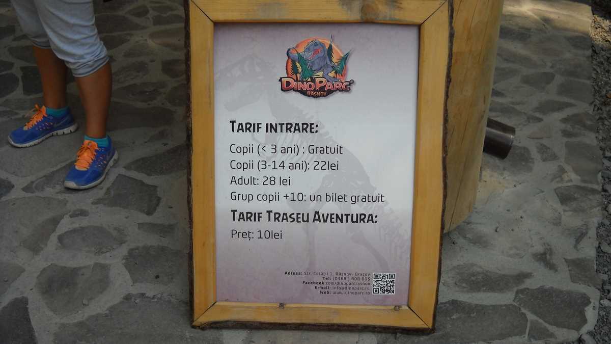 Asta ar fi povestea de introducere a ghidului pentru micuții veniți la Dino Parc. Pentru că lor, puștiului fan T-Rex și copilului din părintele său, le este dedicat în mod special acest parc tematic, unic în Europa de Est, recent deschis pe Dealul Cetății din Rîșnov. Dacă urcușul a trei sute de metri de drum asfaltat ți se pare prea mult pentru picioarele tale și ale familiei tale, un tractoraș-trenuleț (5 lei, dus-întors) te ia din parcare, de lîngă portiera mașinii, și te depune în prima stație, chiar în fața clădirii viu colorate pe care stă călare un brontozaur uriaș. Imediat după intrarea în centrul de vizitare, treci rapid de un Dino Shop (n-o să scapi însă așa de ușor, la ieșire) și de expoziția de schelete în care vedetă e dinozaurul pitic de Hațeg – Balaur Bondoc, după numele său neaoș românesc –, și, după toalete (de reținut amplasamentul, în caz de urgențe), ieși din clădire direct într-un loc de joacă, antecameră a parcului de distracții.