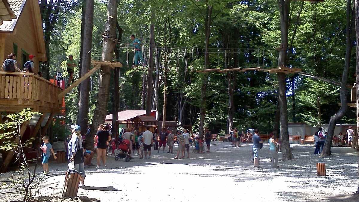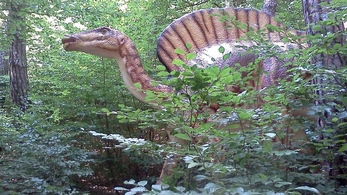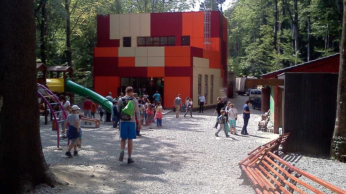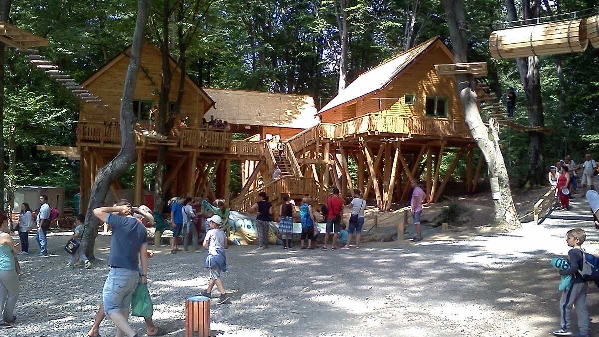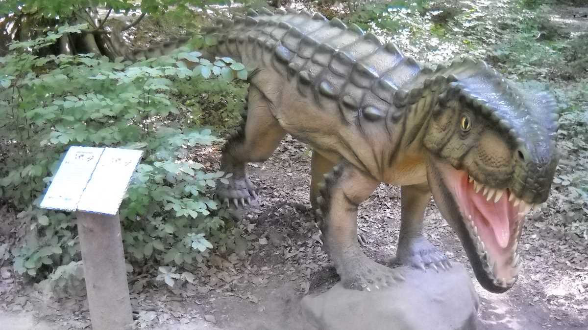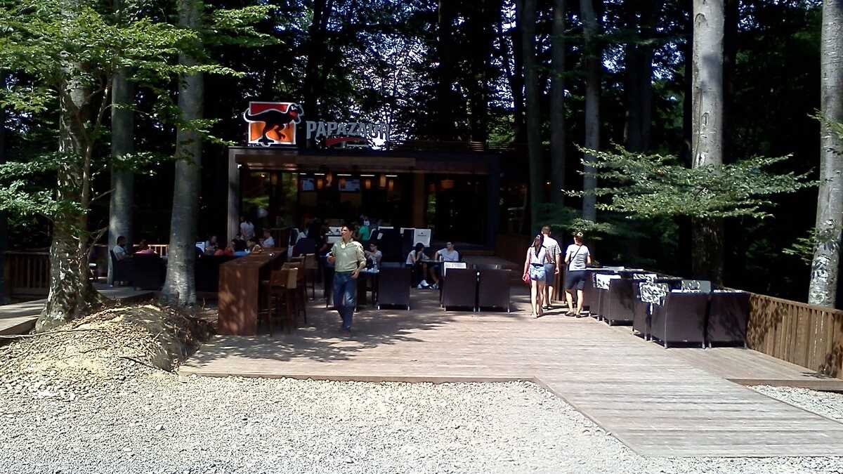 Nu te aștepta la un Jurassic World, în care dinozauri clonați să performeze ca la grădina zoologică; totuși, fără să aibă spectaculozitatea celor din film, cele 45 de machete la scară 1:1, updatate conform ultimelor cercetări în domeniu, par – de la distanță, cel puțin –, foarte reale (paleontologii români le-au dat note de peste 8 și 9, pentru acuratețea realizării). De la o plăcuță informativă la alta, pe un circuit cronologic de vreo 150 de milioane de ani, Triasic – Jurasic – Cretacic, o să dai prin pădure de același peisaj: părinți cu camere foto în mînă și copii curajoși, ieșiți din faza de timorare, care se cațără pe gîturi și spinări, se agață de gheare, bagă capul printre colți, în guri larg deschise. Atracțiile principale sînt un pui de dinozaur scos de trei ori pe zi la plimbare printre puști în extaz și vulcanul artificial care fumegăie și, din timp în timp, erupe, cutremurînd platforma din lemn din apropiere. Sfat prietenesc: la sfîrșit de săptămînă e o aglomerație de vizită la moaște – vino cu copiii odihniți și mîncați, altfel o să ai parte de altfel de distracții.