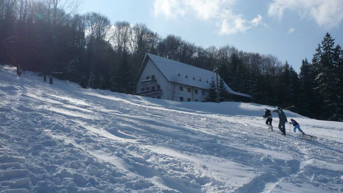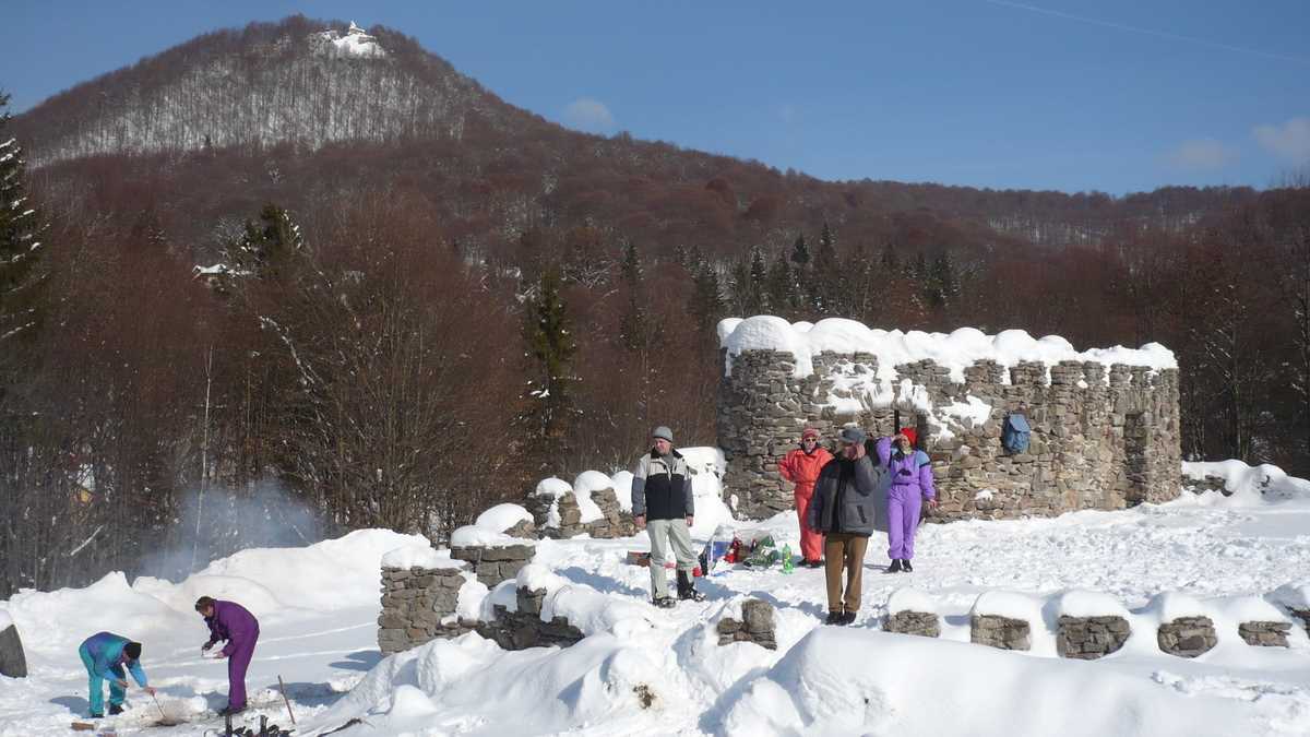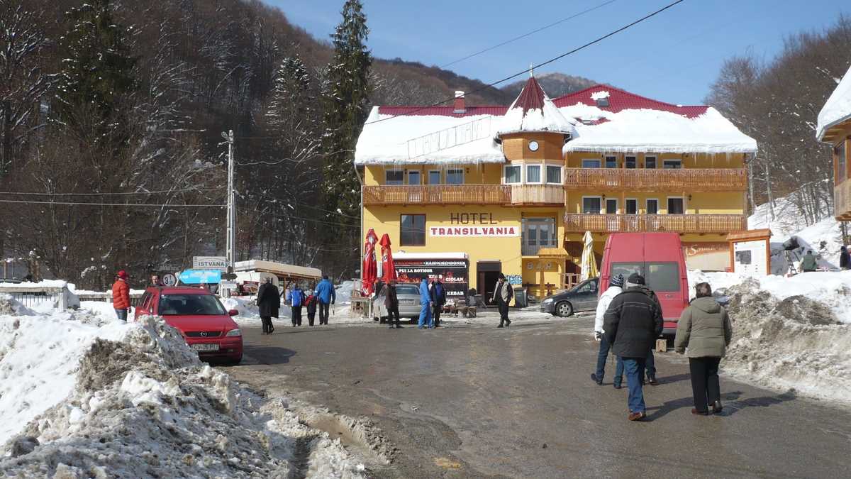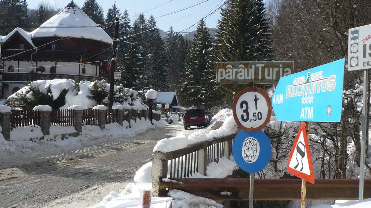 Scăpată de zarva și guițatul porcilor din ajun, Balvanyos e din nou stațiunea liniștită, cu vile și pensiuni împrăștiate pe dealuri, prin pădure. În centru, de la indicatorul dintre rulota cu colaci kürtos (5 lei) și cortul cu suveniruri (brățări din piele, toiege pirogravate, ciorapi de lînă împletiți de bunica vînzătoarei), ai de ales: urci în dreapta, spre ruinele Cetății Balvanyos, construită cîndva, între secolele XI-XII, sau în stînga, la pîrtia de snowboard construită de curînd, la ultima zăpadă căzută, pe care niște puști fac tumbe cu placa. Sau faci cîțiva pași înapoi și intri în restaurantul Palinka & Paprika: pălincă mică, cu prună în ceșcuța de lut – 4 lei, papricaș cu ciolan afumat (preparat probabil din porcul-vedetă al festivalului) – 13,50 lei.