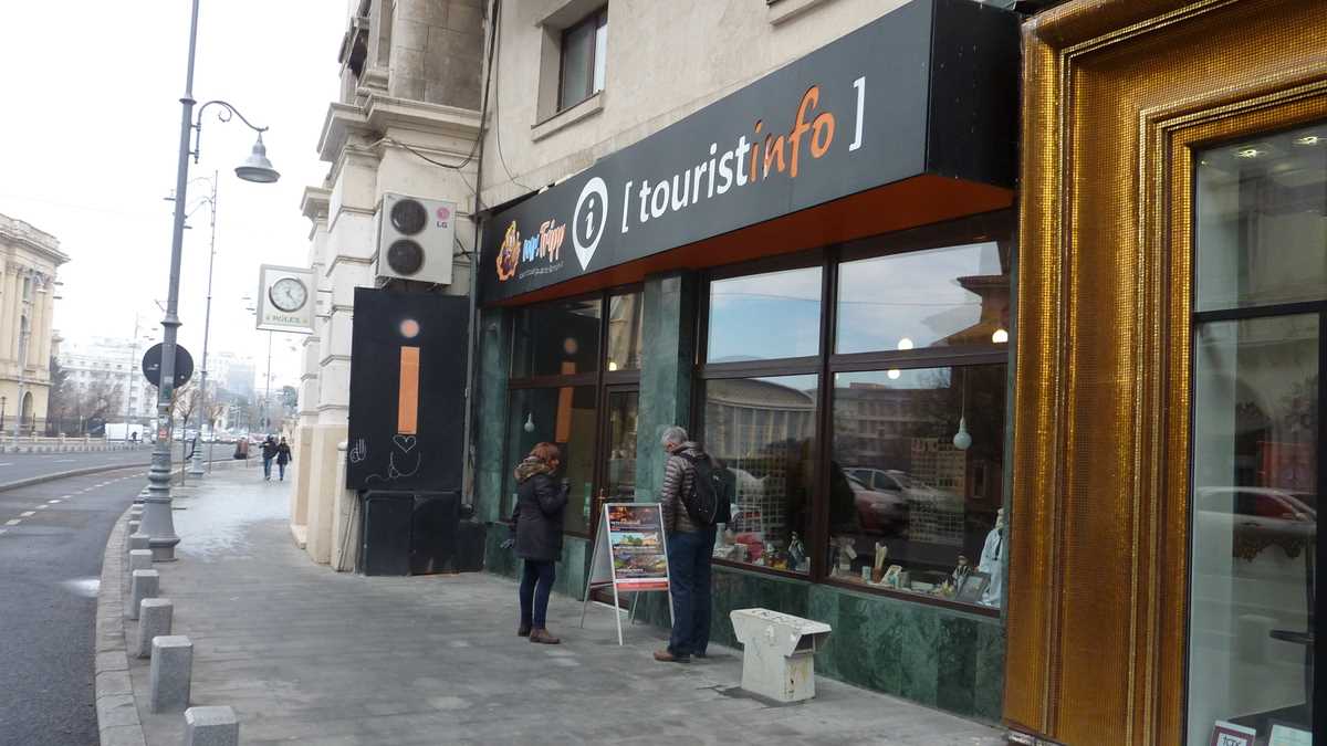 Pe Lipscani, la Tourist & Volunteer Information Center, împing o ușă grea, care se deschide mai mult în stilul smuls. Înăuntru, un băiat și două fete, pe scaune, în spatele unor birouri. Tipul, amabil, mă întreabă cu ce poate să mă ajute, mă invită să iau loc și se oferă să caute pe net evenimentele culturale ale zilei (a găsit ceva la cinematograful de pe Bulevardul Dacia, 15 lei intrarea). A fost singurul care m-a întrebat de unde sînt, apoi m-a rugat să-mi trec într-un caiet numele și e-mail-ul. Why? Ca să-mi trimită informații despre tururi de oraș și excursii prin România. N-am primit încă nimic de la el; e posibil să se întrebe și acum de ce-ar avea un slovac adresă de mail pe domeniul .ro. Disponibilitate *** / Interacțiune cu turistul *** / Calitatea informațiilor **.