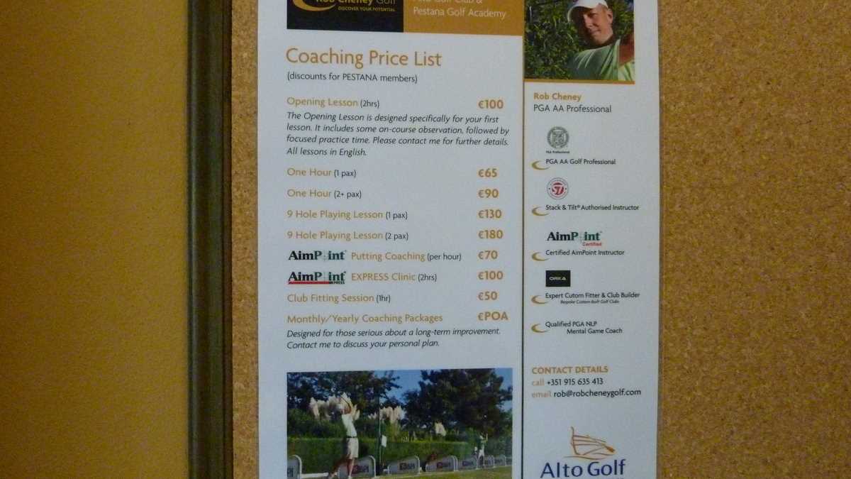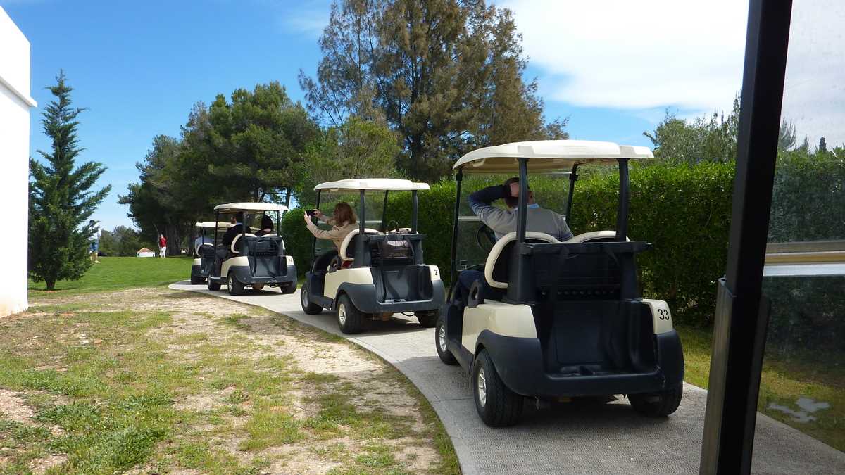 * Cîteva prețuri pentru amatorii de vacanțe la golf în Algarve: lecții de la 50 de euro ora, cotizația de membru – 167 de euro lunar, închiriere de crose – 30 de euro per joc, mașinuța – 45 de euro, terenul în vîrf de sezon (aprilie și octombrie) – 95 de euro. V-ați dezumflat, cu tot cu buzunare? Golful e un sport scump: deși presupune multă deplasare pe coclauri, nu se joacă pe maidan.