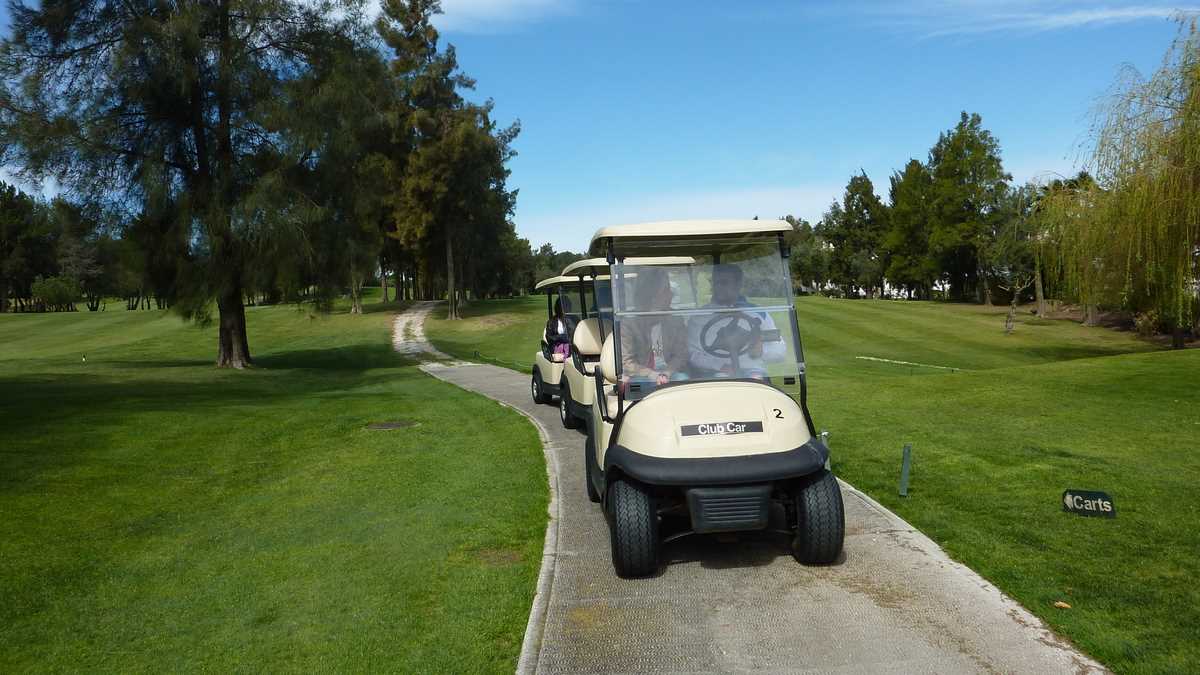 Noi am sărit peste faza cu casieria și am fost invitați să ne îmbarcăm în niște golf buggies, o versiune electrică a vehiculului cu care se deplasa Fred Flintstone, la fel de ecologică. La volanul mașinuței (aș folosi una de-asta oricînd ca mijloc de transport în București), cu Mădălina copilot, m-am aliniat în spatele celorlalte patru, pentru o plimbare de plăcere printr-un parc înconjurat de vilele cu apartamentele jucătorilor, pe alei pietruite sau pe gazonul tuns la perfecție de un hair stylist – scuze, grass stylist –, o imensă masă de biliard cu buzunare semnalizate cu fanioane, la care bilele intră în găuri după ce ocolesc rațele de pe iaz și copacii-umbrelă, în pauzele de retragere la umbră. Convoiul de mașinuțe se oprea brusc în preajma zonelor de joc, transformîndu-ne în spectatori tăcuți ai golferilor, marea majoritate seniori, pe toată durata loviturii.