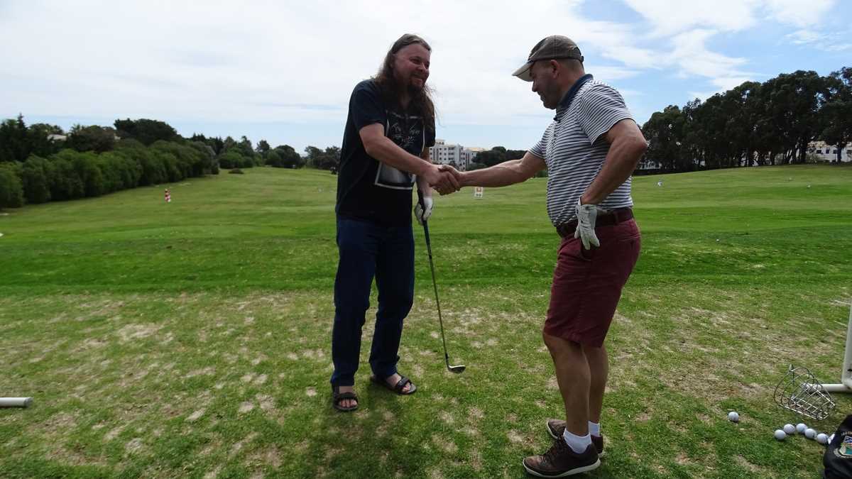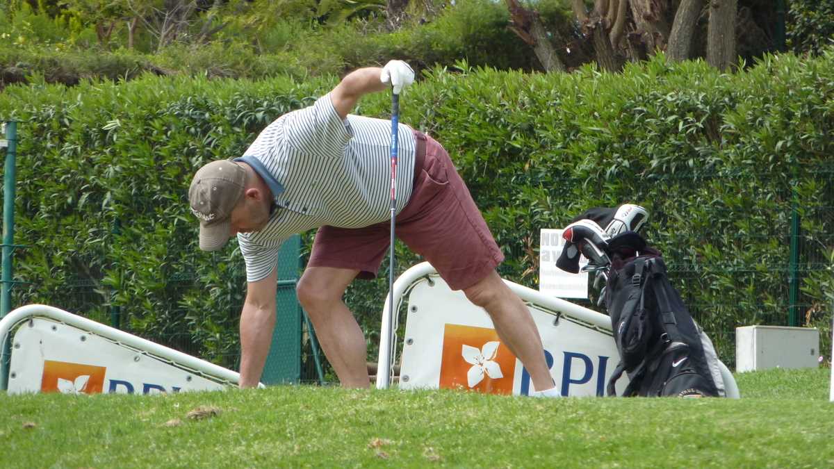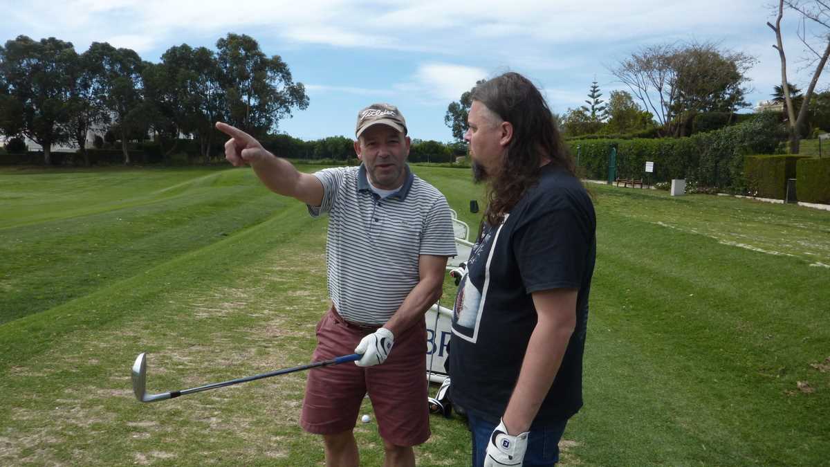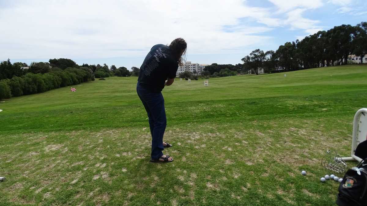 La finalul turei am ajuns și la Academia de Golf, acolo unde-și perfecționa tehnica Valdemar, un portughez care locuiește de vreo 30 de ani în Luxembourg, dar, în concedii, se întoarce la iarba verde de acasă. De la el am primit prima lecție de golf, gratis: mi-a dat o mănușă (pentru mîna stîngă), mi-a împletit degetele pe crosă și mi-a predat un scurt curs de dinamică a lovirii, presărat cu exemple și sfaturi practice. Le reproduc întocmai, pentru cei care vor să se apuce de golf, dar pînă acum n-au exersat decît cu coada mopului: ține crosa as you’re holding your dick, flexează ușor genunchii, balansează din șolduri, defazat față de brațe, și lovește puternic, like you are very angry and want to smash your mother-in-law, larg, cu o cursă cît mai lungă a crosei. Țintitul găurii este opțional la prima lovitură, cel mai important fiind să te concentrezi ca să nimerești mingiuța.