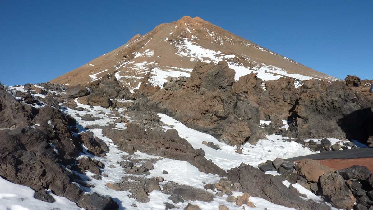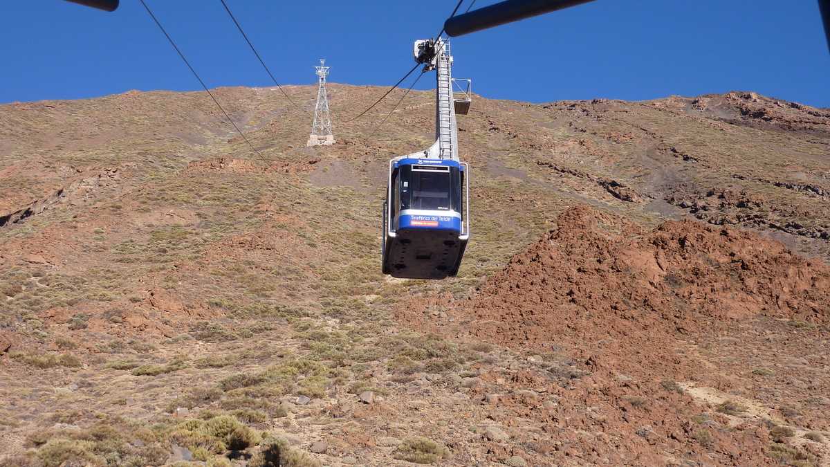 Ziua a doua a infotrip-ului de Tenerife. După programul de vizite pe lîngă apă din prima zi, urma unul de excursie montană, pe El Teide, cel mai înalt masiv al Spaniei (3.718 m). Plecați cu autocarul de la hotelul din Costa Adeje dimineață devreme, în vreo 45 de minute rulam deja pe șoseaua în serpentină dintre migdalii și pinii canarieni de la intrarea în Parcul Național Teide, situl UNESCO care ocupă tot centrul insulei. O rezervație naturală cu vegetație pitică și faună destul de redusă (rozătoare, șopîrle, insecte, păsări mici), al cărei sol vulcanic poros și bolovănos creează un decor ciudat de început de univers, în care s-ar putea turna liniștit SF-uri despre lumi extraterestre sau mitologice (n-am avut primul ideea asta: în 2010, s-a filmat aici Clash of the Titans). Nu era încă 9 a.m. și eram gata îmbarcați în telecabina spre vîrf (27 de euro, dus-întors; 50% reducere pentru rezidenți).
