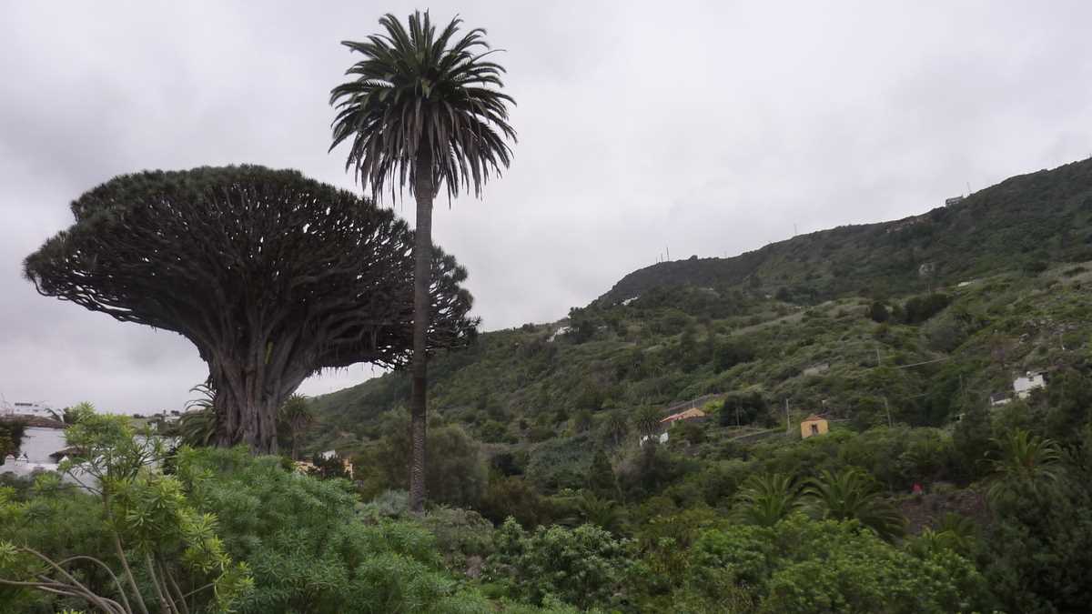Din La Orotava ne-am mutat ceva mai încolo, în Icod de los Vinos, un alt orășel de coastă în care atracție principală și simbol local (nu numai al orașului, ci al întregului arhipelag) e Drago Milenario, un tufiș uriaș de 18 metri înălțime și zece metri diametru, la bază, cu ramuri goale pe interior, care, cică, ar avea o mie de ani. Broccoli-ul ăsta imens, cel mai bătrîn din lume în specia sa, a fost primul în peisajul plantat ulterior în vecinătate: o mică grădină botanică cu floră canariană, în jurul lui, o piațetă cu foișor și o biserică, San Marcos, cea mai veche a localității, peste drum de parc. Pont: cel mai comod și elegant, e vizibil din grădina gard în gard cu parcul a magazinului-cafenea-terasă, cochet amenajat și plin de suveniruri artizanale, La Casa del Drago, unde poți bea o cafea cu ochii direct pe celebrul boschet aflat cîțiva metri mai încolo.