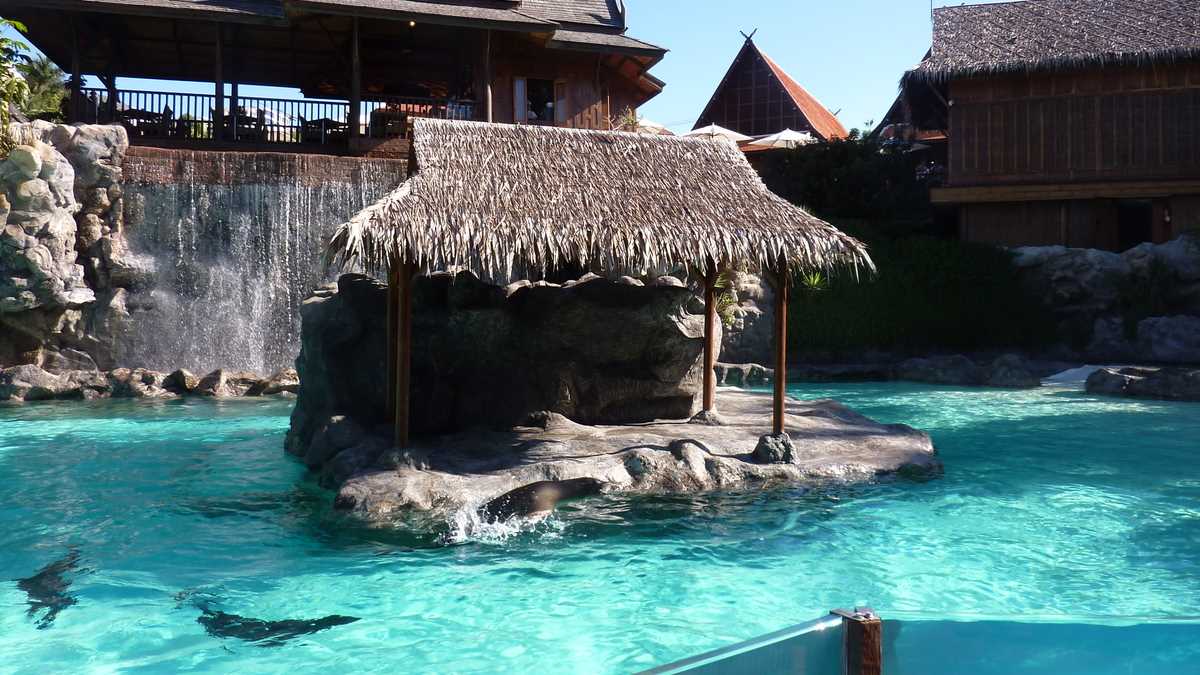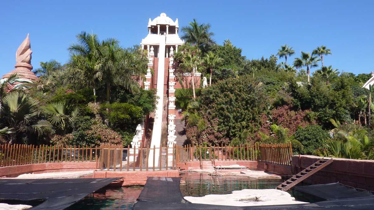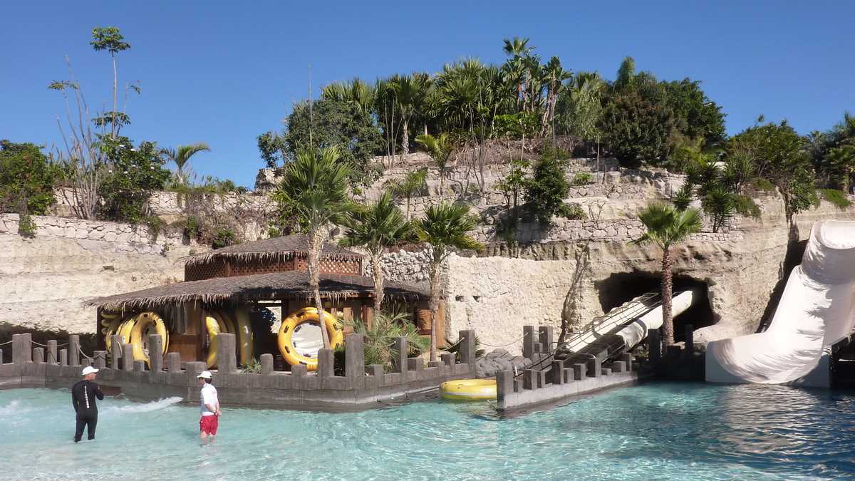 Ceva mai tîrziu, îl vedeam și în viteză, din microbuzul condus de un fost gălățean emigrat aici acum zece ani, pe impecabila autostradă circulară a insulei apropiată de țărm și de localitățile construite, cu foarte puține excepții, în vecinătatea oceanului, în drum spre Siam Park. Parcul acvatic cu proprietar thailandez, deschis în 2008, e, zilnic, principala atracție turistică pentru 1.000-1.500 de oameni (acum, în plin sezon, are pînă la 8.000 de vizitatori pe zi). Turul început cu spectacolul celor trei jucăuși lei de mare poftiți la masă cu o lovitură de palmă în apă a trecut, printre tot felul de instalații acvatice împrăștiate prin vegetația luxuriantă a unei flore exotice, în care te dai cu salteaua pe toboganul cu apă ca sania pe derdeluș, și pe lîngă cea mai mare piscină cu valuri artificiale din lume.