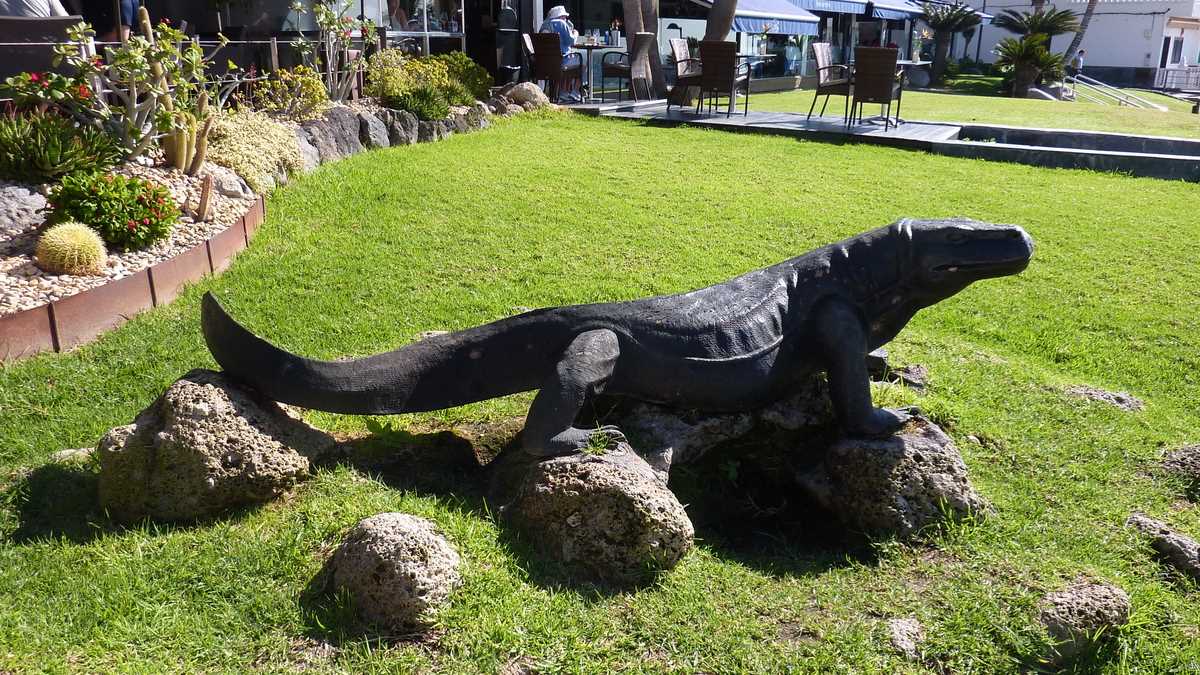 A doua zi dimineață – practic, prima a infotrip-ului –, am început prin a înțelege unde am aterizat. Fuseserăm cazați în Costa Adeje, stațiunea de pe coasta sud-vestică cu 68.000 locuri de cazare care, conform ghidului local, acum vreo 35 de ani, cînd era el copil, nu exista: singura așezare de atunci, satul de pescari La Caleta, e azi o aglomerație de terase și restaurante de lux deasupra oceanului alăturată zonei Playa de las Américas – Los Cristianos, cea mai mare densitate de hoteluri de patru și cinci stele din lume, cum se laudă gazdele. Am ajuns și acolo, dar nu înainte de scurta lecție de istorie locală animată cu coloniști spanioli și băștinași de origine nord-africană, guanche, începută în fosta capelă franciscană de secol XVIII, actualmente sală de festivități a Primăriei Adeje, și în biserica Santa Úrsula de secol XVI. Continuată apoi între cele două clădiri, în piațeta centrală vecină cu un canion, privind la hăul de dedesubt și la versantul arid străbătut doar de o conductă de apă, parte a masivului muntos central cu vulcan în focar care a erupt ultima dată acum 111 ani, în 1909.