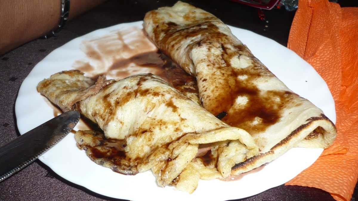 Căldura sufocantă și muștele insistente de pe terasă ne-au convins imediat să alegem să mîncăm înăuntru (unde aerul condiționat exista, dar era puțin închis), în restaurantul cam înghesuit, cu saloane lungi, înguste și mese dispuse pe două rînduri, ca la nuntă.