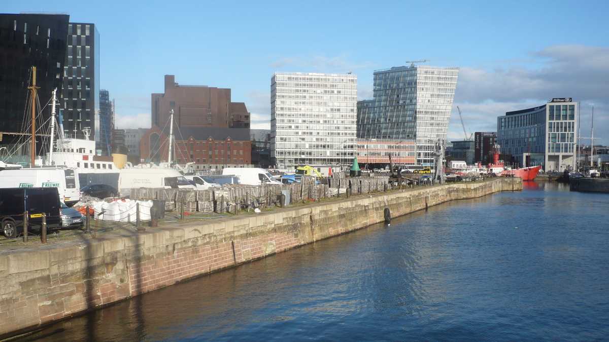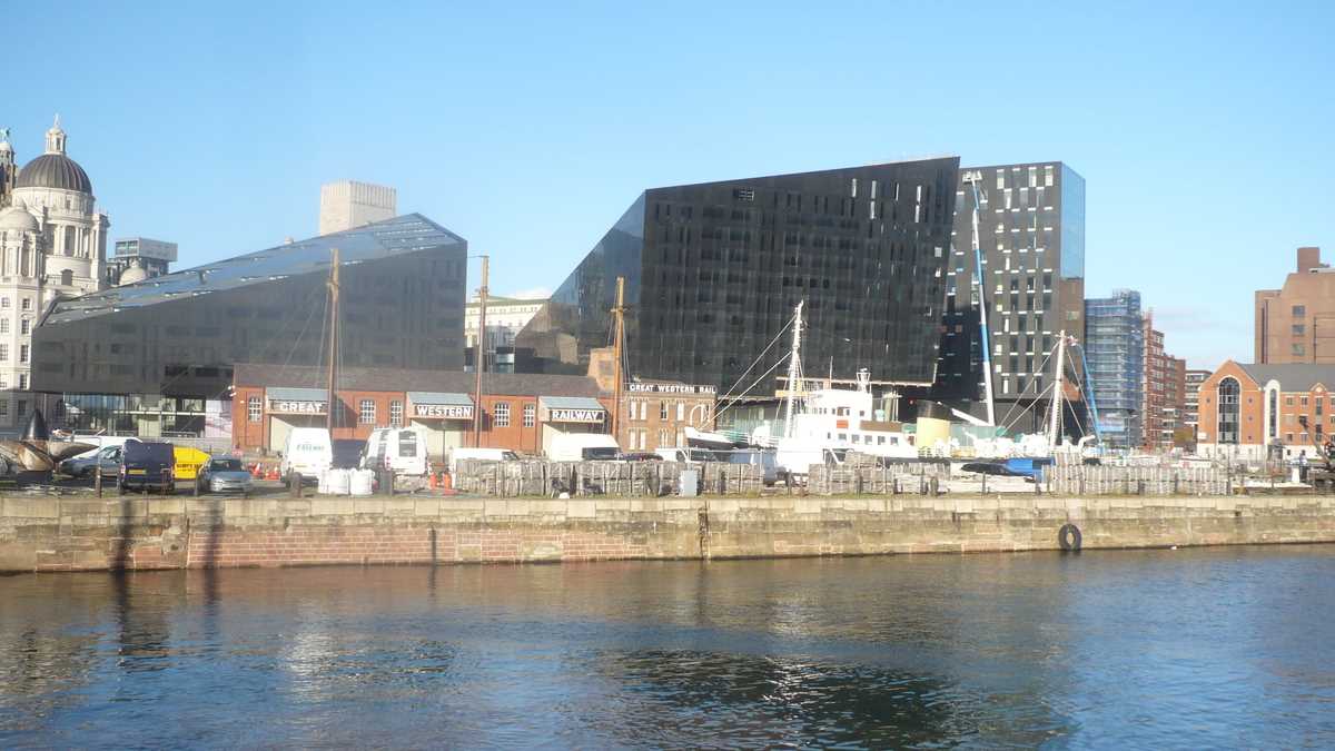 Plecînd de la stația Lime Street, situată vizavi de St George’s Hall, clădirea neo-clasică cu statui ecvestre în față, am traversat rapid hipercentrul – un uriaș mall în aer liber străbătut de artere pietonale –, către port și zona de promenadă Pier Head, flancată de clădiri istorice și zgîrie-nori, cocktail arhitectonic de clasic și modern: Royal Liver Building, de pe care pare că-și ia zborul cormoranul, legendara pasăre care patronează orașul, Cunard BuildingPort of Liverpool Building, Atlantic Tower, Museum of Liverpool.