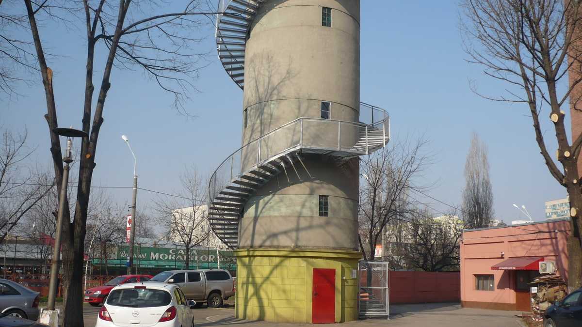 Am coborît din metrou la stația Costin Georgian, am traversat intersecția Bulevardul Basarabia – Șoseaua Morarilor; mai avem încă puțin de mers și ajungem. Domnișoara cu polar-ul roșu, aveți o întrebare, vă ascultăm. Cu ce-ar fi diferită urcarea în turnul ăsta față de banala ascensiune într-un bloc cu opt etaje? Good point: păi, în principal, pentru că acest Turn de Apă încă funcțional (pe care îl vedeți deja, imediat după Facultatea de Pompieri, pe dreapta; da, ăla cu partea superioară vopsită în verde) a fost transformat recent într-un Turn de Artă, un spațiu neconvențional pentru diferite experiențe acustice și vizuale. Jos, în centrul bazei cilindrului, locul unde se adună toate ecourile, pot fi organizate miniconcerte de instrumente reci sau audiții de sunete înregistrate; pereții interiori pot constitui oricînd o uriașă simeză pentru picturile și instalațiile artiștilor plastici underground (în cazul de față, aboveground).