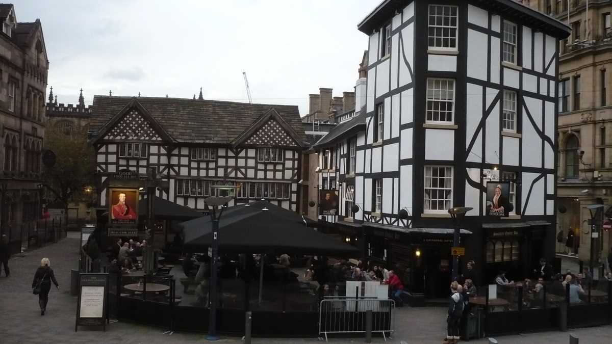 Dar, pentru noi ăștilalți, cei pentru care meciul este doar un pretext de a vizita orașul, fiecare oră e prețioasă. Există varianta rapidă și comodă: Metroshuttle, autobuzul muncipalității care, pe trei trasee diferite, acoperă cam toate zonele de interes. Gratis. Este suficient, însă, s-o iei la picior (tot gratis) pe Deansgate, bulevardul principal, și, traversînd centrul pe axa nord-sud – de la Manchester Cathedral și Manchester Wheel, roata din Exchange Square, pînă la Beetham Tower, celebrul bloc-turn de 169 de metri înălțime și 47 de etaje, de care localnicii sînt foarte mîndri (a cîștigat nu-ș’ ce premiu pentru design) -, o să-ți faci o idee despre exteriorul orașului: clădiri cu stiluri arhitectonice foarte diferite, de la cel victorian la cel modern, contemporan, în nuanțe dominante de cărămiziu și gri, care, combinate cu cerul mai mereu înnorat, creează o senzație stranie, grea.