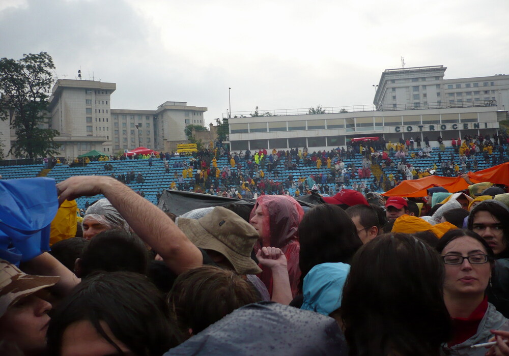 De la stație de la Erorilor ne încolonăm spre intrarea aflată la un kilometru și ceva. Plouă sîcîitor; umbrele arestate la intrare. Înăuntru, o sucursala Raifeissen te așteaptă să aplici pentru un credit de nevoi personale: 2 jetoane (5 ron) pentru 300 ml de bere? Hmm… Noroc cu ploaia care îți completează rapid nivelul din pahar.