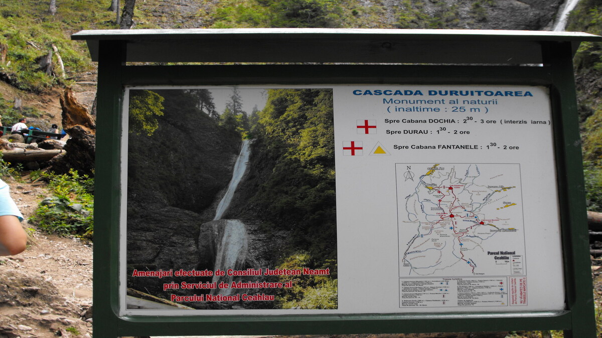 La coborîre faceți o vizită cascadei Duruitoarea, formată între două praguri ale pîrîului Rupturi pe o înălțime totală de peste douăzeci de metri. Apoi, după o escală scurtă în Poiana Viezuri, vă întoarceți la pensiune pe la 7, fix cînd norii și o ceață ca vata învăluiesc crestele Ceahlăului, iar o ploaie măruntă și rece vă întîmpină, alături de tanti Maria, cu umbrela în poartă: Bine că v-ați întors, mamă, chiar mă îngrijoram pentru voi, puilor!“.